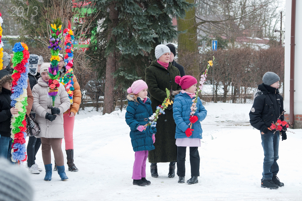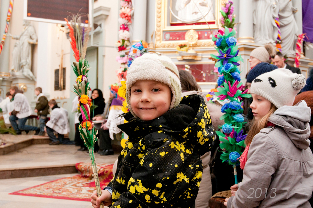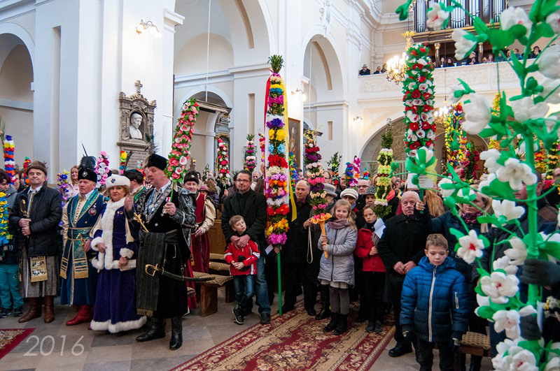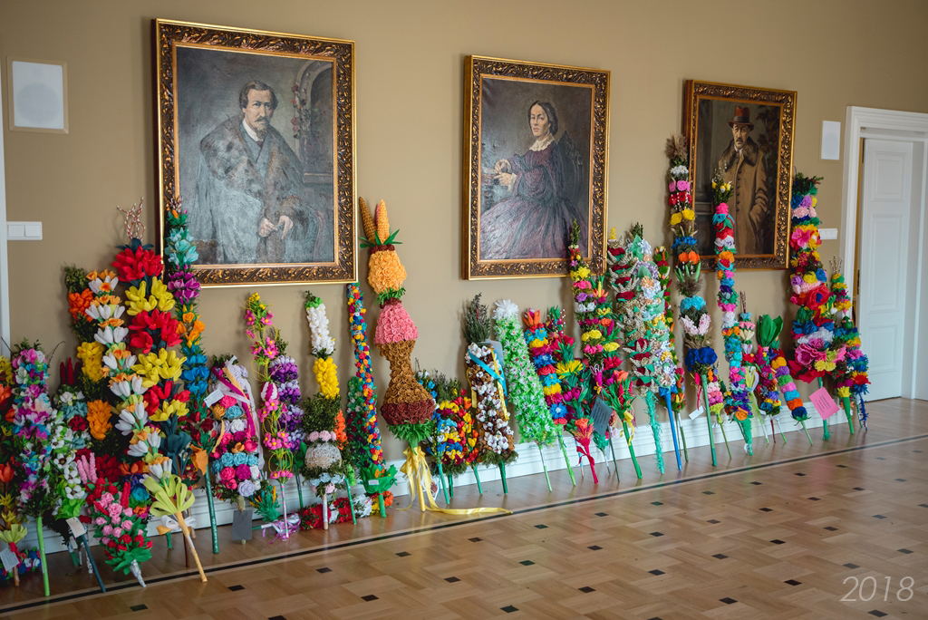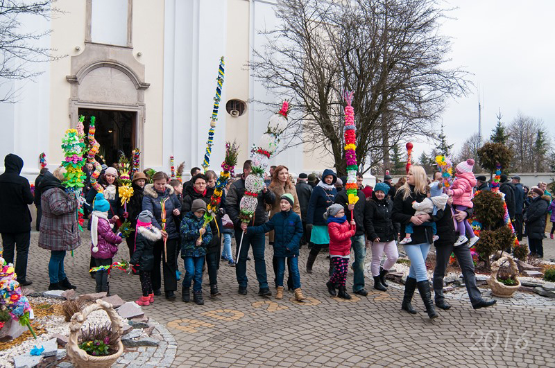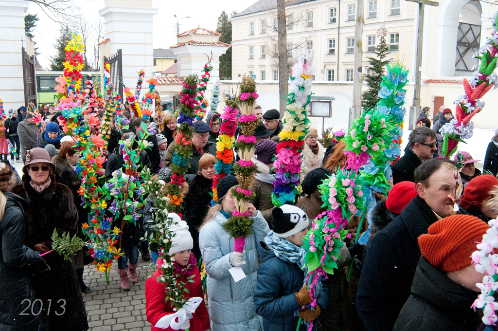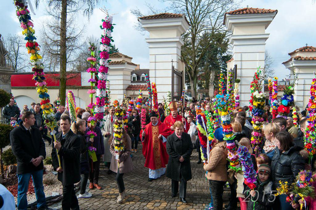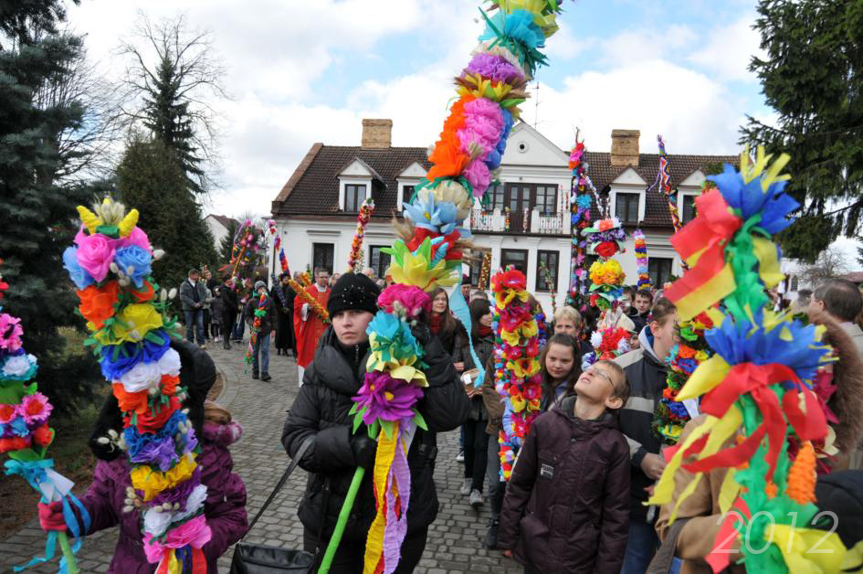 Wielkanoc to najradośniejsze święto – zarówno w kościelnym roku liturgicznym, jak i w obrzędowym kalendarzu polskiej wsi. Wiosna od zawsze przynosiła nadzieję na nowe życie. Świętowanie wiosenne rozpoczynało się już w Wielkim Poście, kiedy to zaczynano przygotowania do Niedzieli Palmowej, wycinając wierzbowe gałązki, z których robiono palmy. Wierzbę uważano za symbol zmartwychwstania i nieśmiertelności duszy. Gałązki wstawiano do naczynia z wodą, by zazieleniły się. Dołączano do nich też inne rośliny: bukszpan, barwinek, cis, widłak. Całość przybierano kolorowymi wstążkami i suszonymi kwiatkami. Po poświęceniu w kościele i powrocie do domu, zatykano je w izbie za któryś ze świętych obrazów.