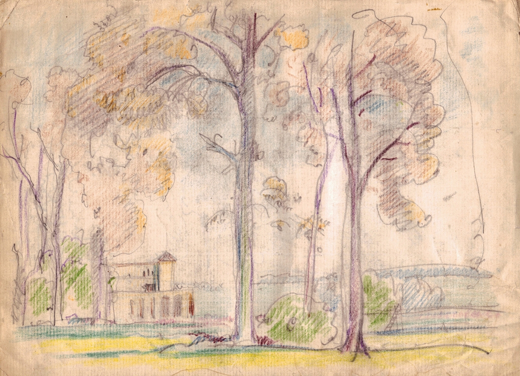 Ignacy Pieńkowski, Pejzaż, rysunek kredką.