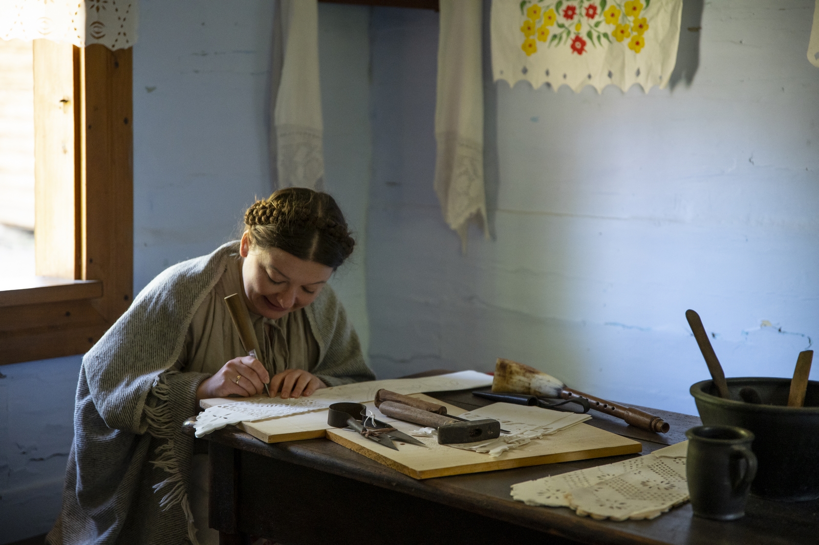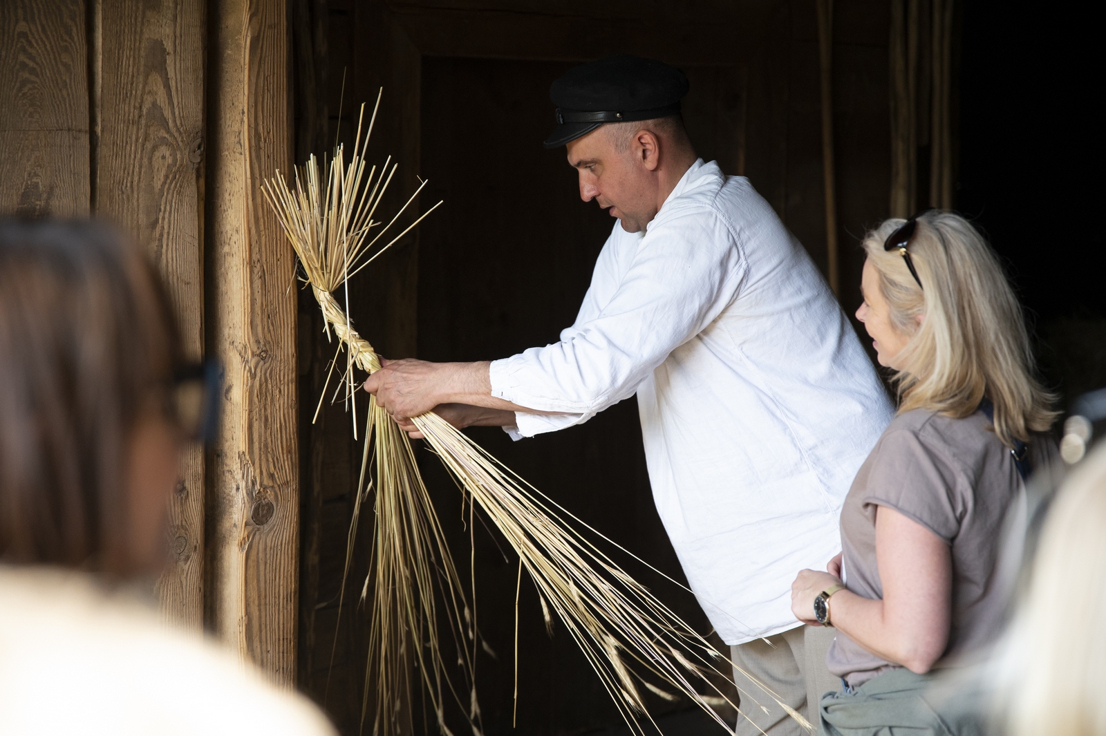 Na terenie skansenu przygotowano wiele ciekawych pokazów, dzięki którym uczestnicy jarmarku mogli poznać arkana tkactwa, nauczyć się dziergać na szydełku oraz wycinać ażurowe firanki z papieru. Chętni mogli obserwować lub czynnie uczestniczyć w przygotowaniu daszków ze słomy do pokrycia uli kłodowych lub nauczyć się wyplatania koszy z gałązek wierzbowych oraz poznać tajniki wplatania płotów leszczynowych.