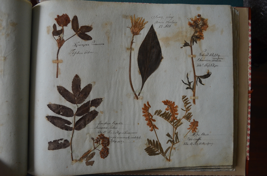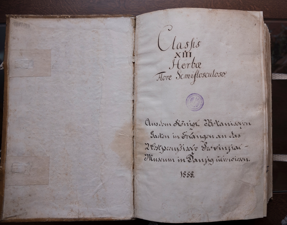 Zabytkowy zielnik z 1888 roku (nr. inw. VIII/197). Ten herbarz ma formę albumu, zawiera ponad 300 kart z naklejonymi okazami zielnikowymi.