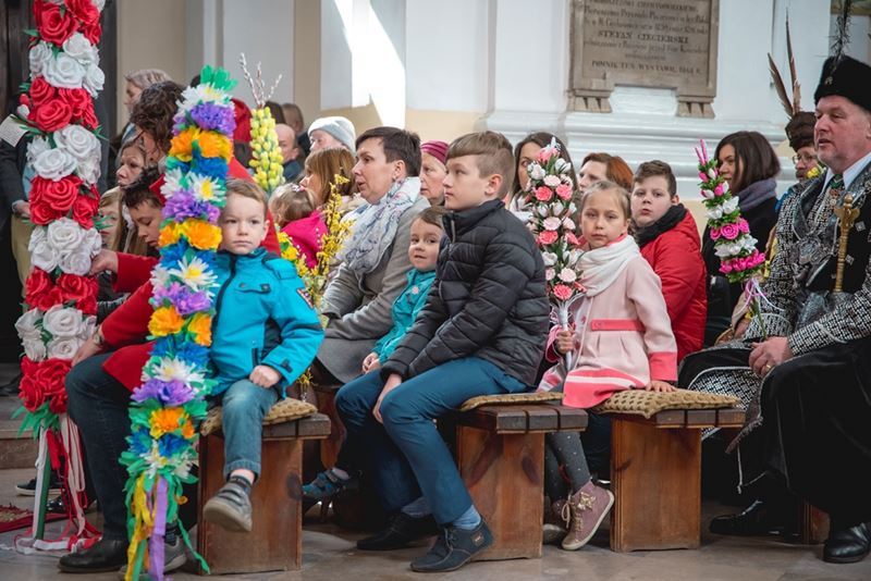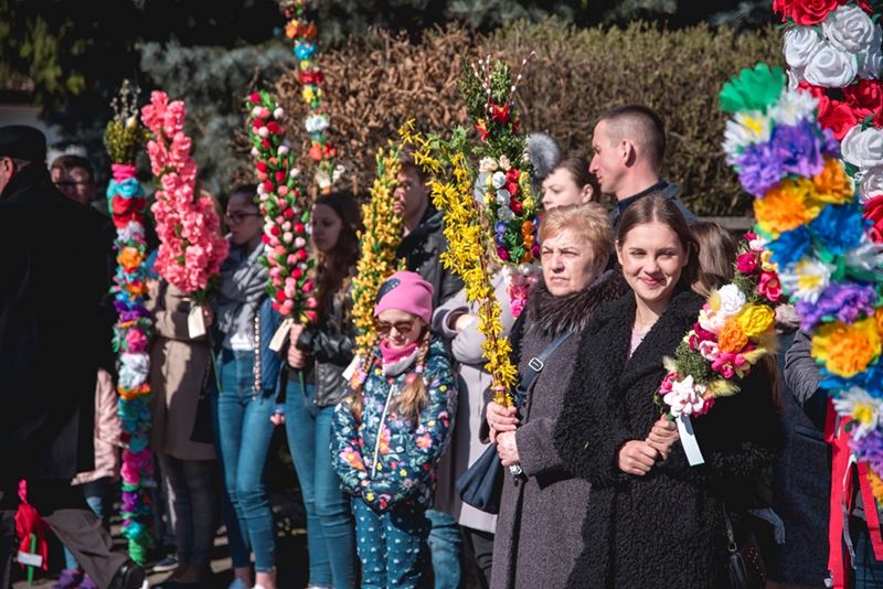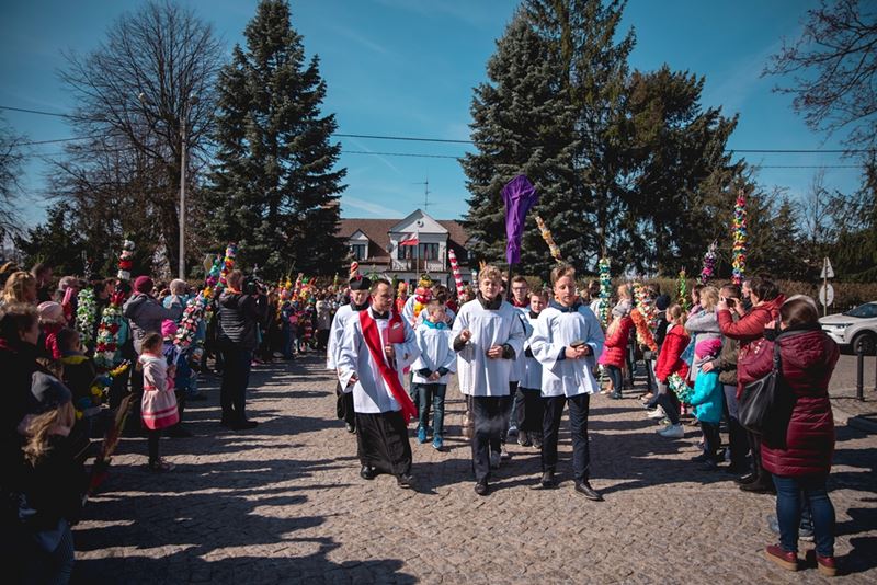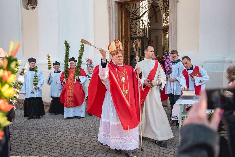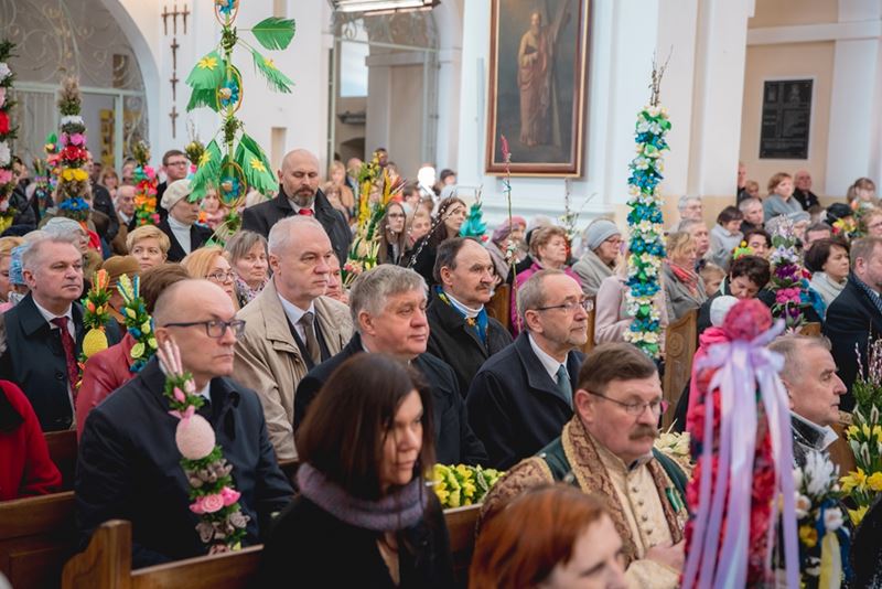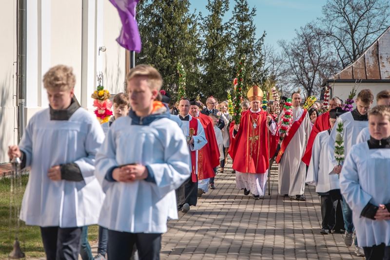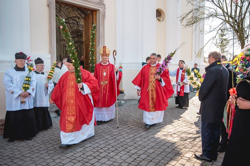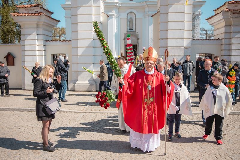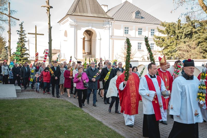 Uroczystość Niedzieli Palmowej pod Patronatem Duchowym Jego Ekscelencji Księdza Biskupa Tadeusza Pikusa Ordynariusza Diecezji Drohiczyńskiej stała się już tradycją w ciechanowieckiej parafii pw. Trójcy Przenajświętszej w Ciechanowcu. Ten dzień był jednocześnie zakończeniem i podsumowaniem XXII Konkursu na Wykonanie Palmy Wielkanocnej, organizowanego przez Muzeum Rolnictwa im. ks. Krzysztofa Kluka w Ciechanowcu, Starostwo Powiatowe w Wysokiem Mazowieckiem oraz Parafię pw. Trójcy Przenajświętszej w Ciechanowcu. O godz. 9.30 uczestnicy konkursu ze swoimi palmami przywitali przed plebanią gości oraz JE Księdza Biskupa, który poprowadził uroczystą procesję Niedzieli Palmowej do kościoła na Mszę Świętą i poświęcił wszystkie palmy.
