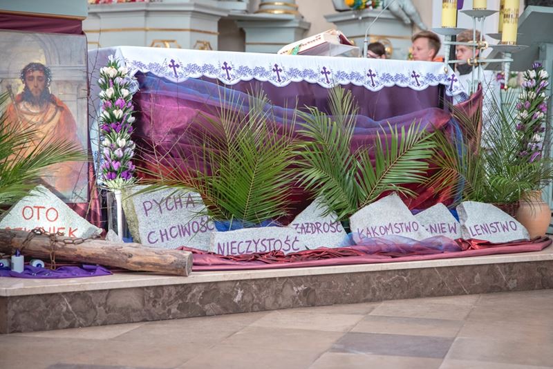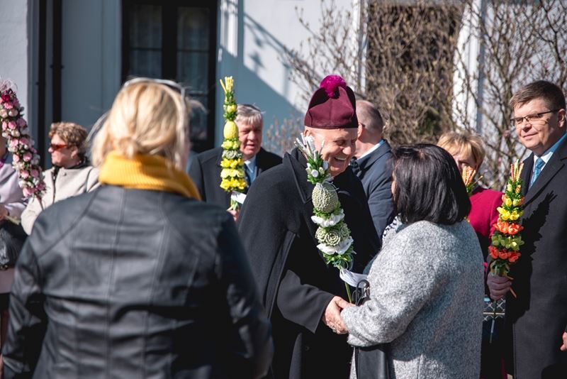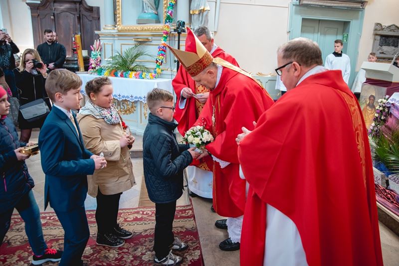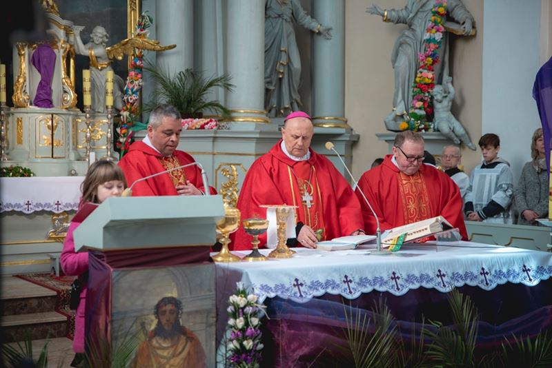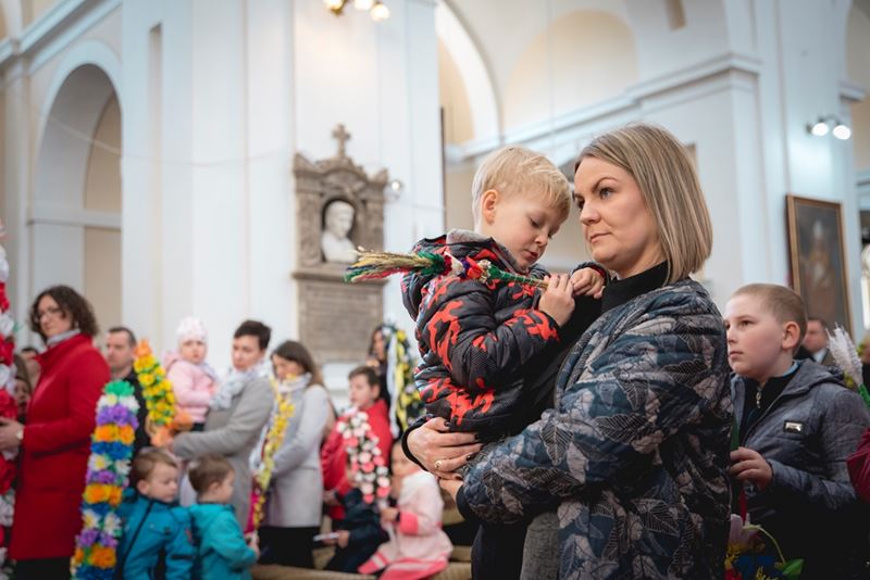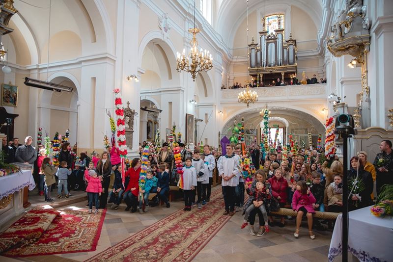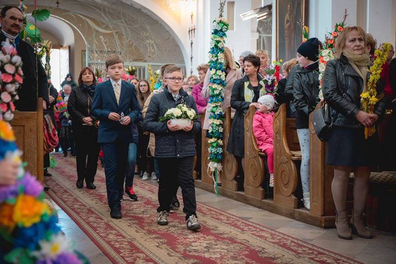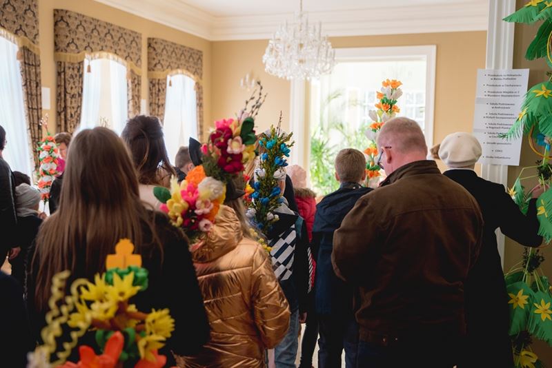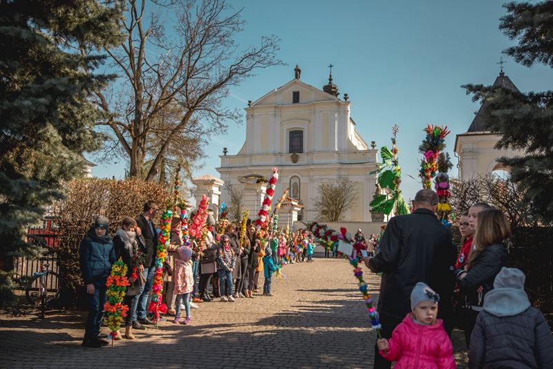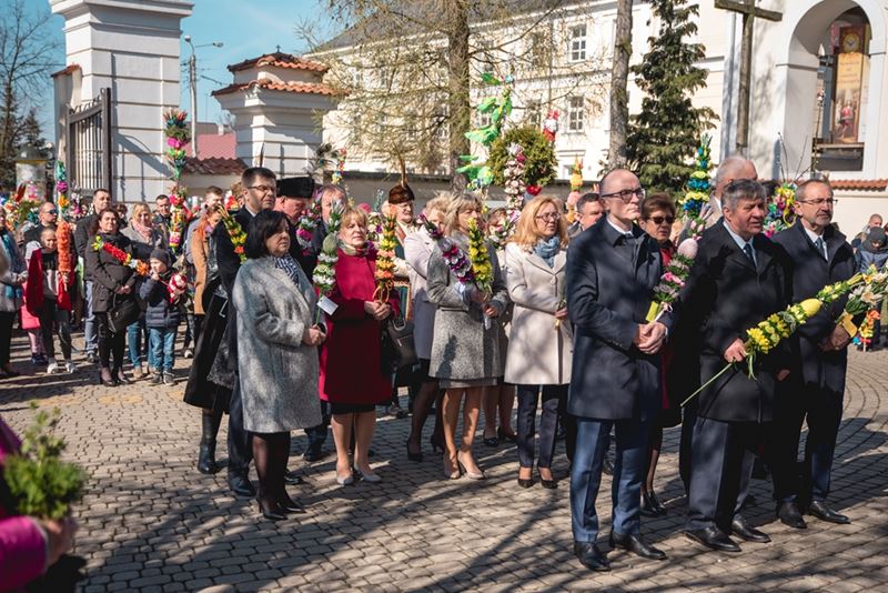 Uroczystość Niedzieli Palmowej pod Patronatem Duchowym Jego Ekscelencji Księdza Biskupa Tadeusza Pikusa Ordynariusza Diecezji Drohiczyńskiej stała się już tradycją w ciechanowieckiej parafii pw. Trójcy Przenajświętszej w Ciechanowcu. Ten dzień był jednocześnie zakończeniem i podsumowaniem XXII Konkursu na Wykonanie Palmy Wielkanocnej, organizowanego przez Muzeum Rolnictwa im. ks. Krzysztofa Kluka w Ciechanowcu, Starostwo Powiatowe w Wysokiem Mazowieckiem oraz Parafię pw. Trójcy Przenajświętszej w Ciechanowcu. O godz. 9.30 uczestnicy konkursu ze swoimi palmami przywitali przed plebanią gości oraz JE Księdza Biskupa, który poprowadził uroczystą procesję Niedzieli Palmowej do kościoła na Mszę Świętą i poświęcił wszystkie palmy.