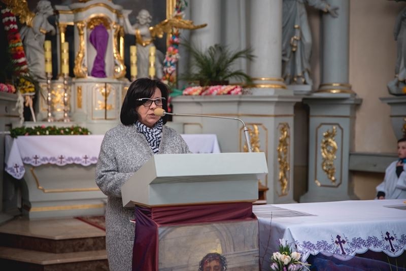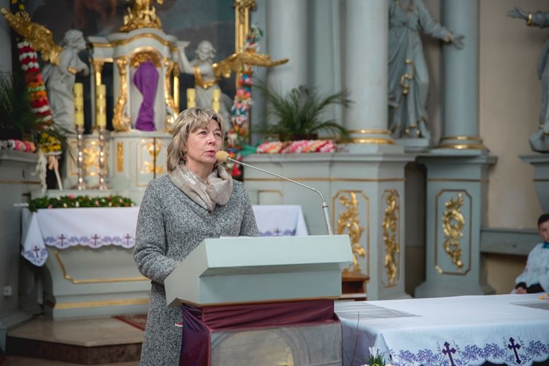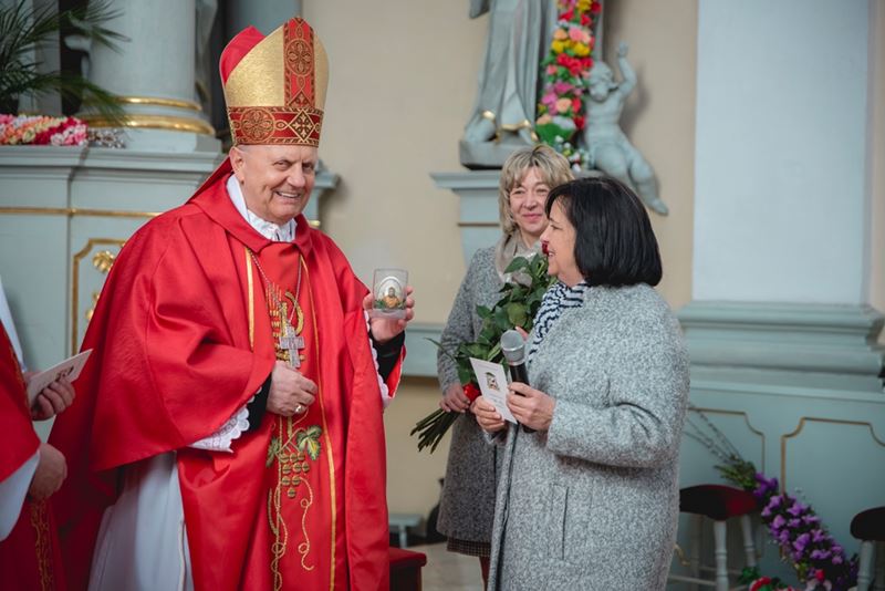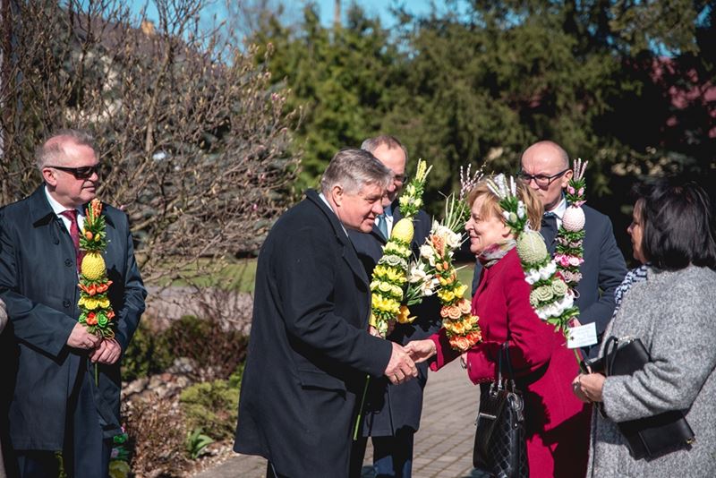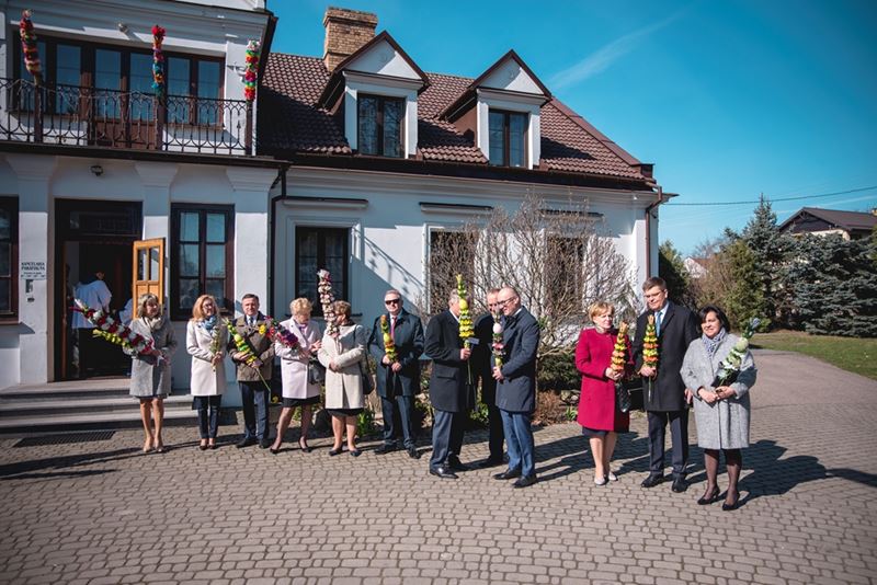 Na zakończenie Mszy Świętej Dyrektor Muzeum Rolnictwa Dorota Łapiak oraz Zastępca Dyrektora Anna Wiśniewska dziękując za wieloletni patronat duchowy nad Konkursem złożyły na ręce Księdza Biskupa Tadeusza Pikusa pisankę z kopią obrazu Brata Alberta Chmielowskiego „Ecce Homo”, wykonaną przez Pana Wojciecha Boguckiego z Ciechanowca.