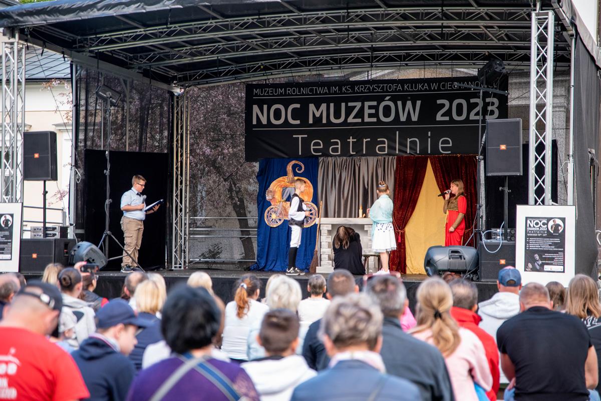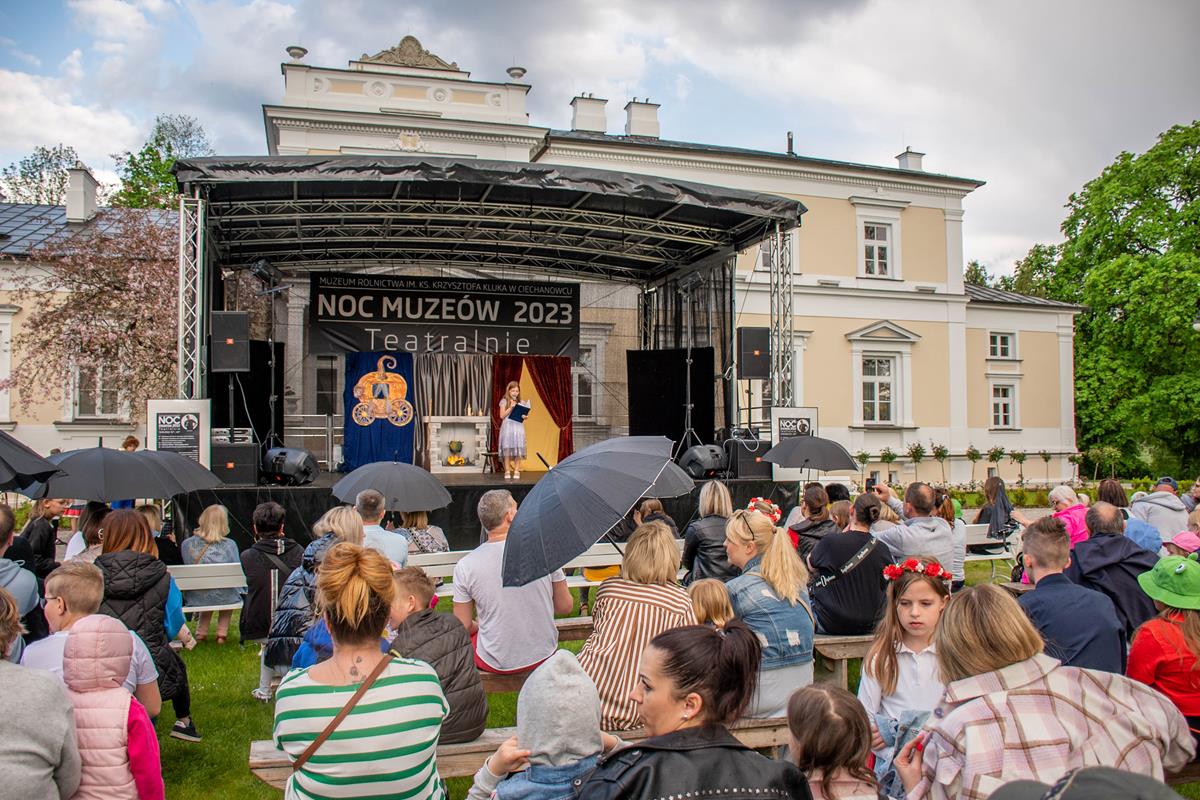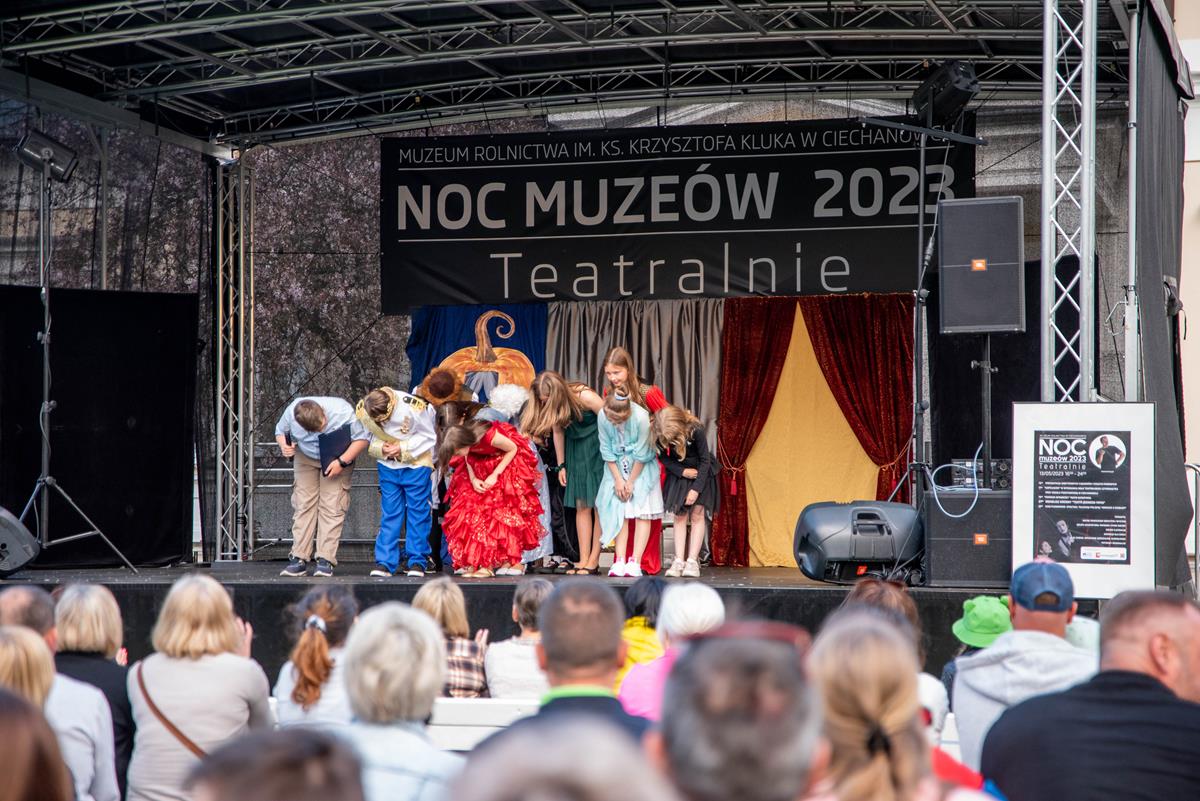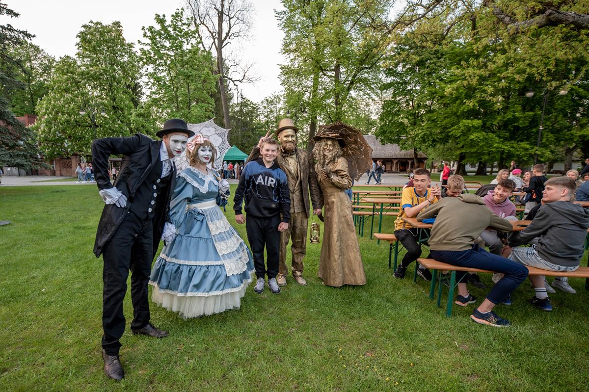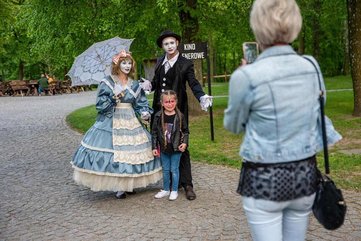 Tego dnia muzeum przerodziło się w teatralną scenę. Wśród spacerowiczów można było spotkać „żywe rzeźby” i mimów zapraszających do wspólnych zdjęć i zabawy. Na scenie młodzi aktorzy ze Szkoły Podstawowej w Ciechanowcu wystawiali Kopciuszka. Teatr Katarynka zabrał nas w krainę „Morskich opowieści”, zachęcając najmłodszą publiczność do wspólnej zabawy.