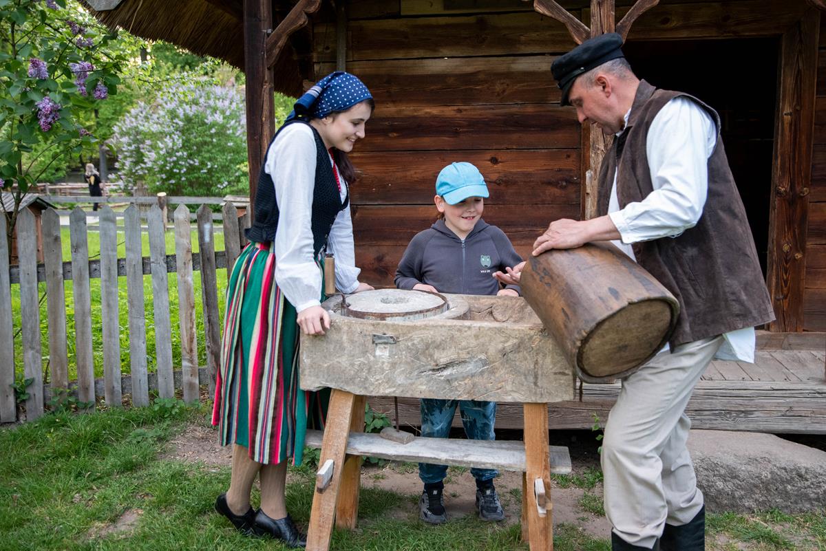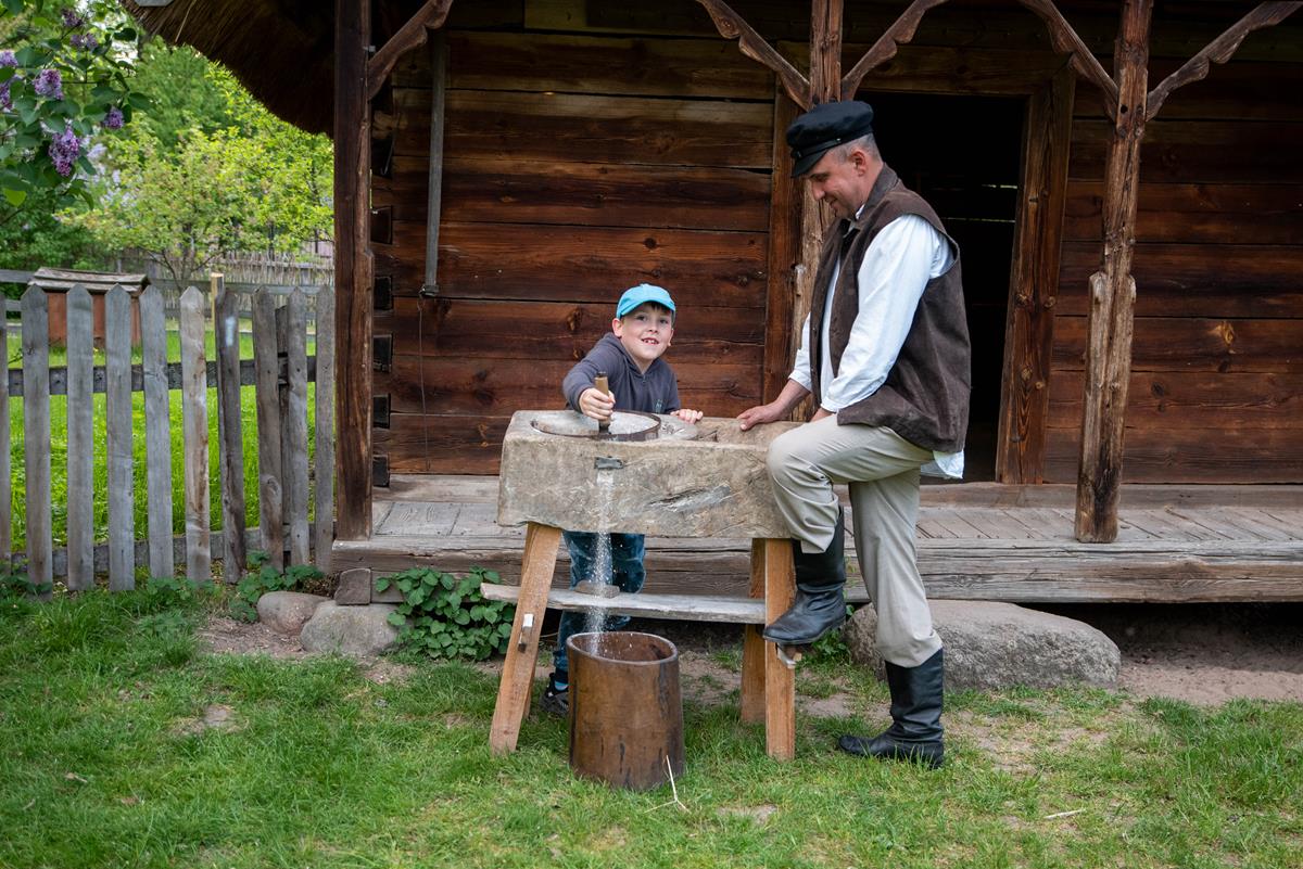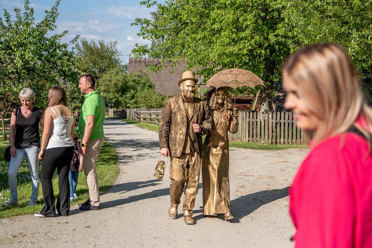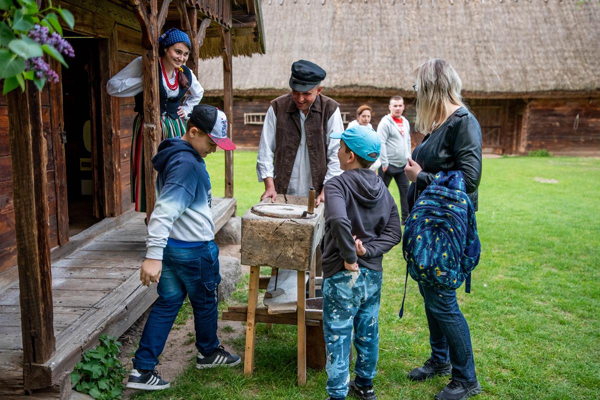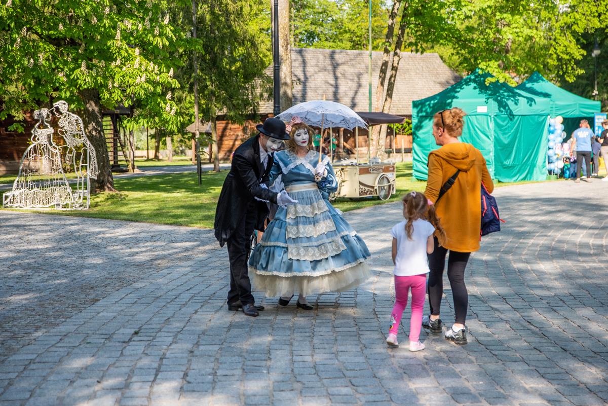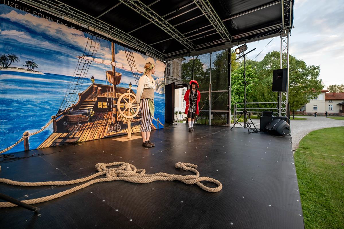 Tego dnia muzeum przerodziło się w teatralną scenę. Wśród spacerowiczów można było spotkać „żywe rzeźby” i mimów zapraszających do wspólnych zdjęć i zabawy. Na scenie młodzi aktorzy ze Szkoły Podstawowej w Ciechanowcu wystawiali Kopciuszka. Teatr Katarynka zabrał nas w krainę „Morskich opowieści”, zachęcając najmłodszą publiczność do wspólnej zabawy.