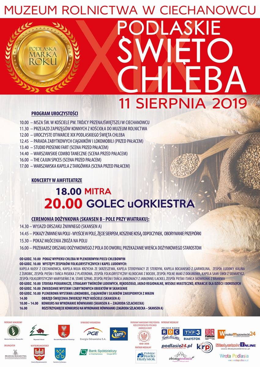 !!! UWAGA !!! USTAWIANIE STOISK HANDLOWYCH ZGŁOSZONYCH NA XIX PODLASKIE ŚWIĘTO CHLEBA OD GODZINY 6:00 W DNIU IMPREZY.