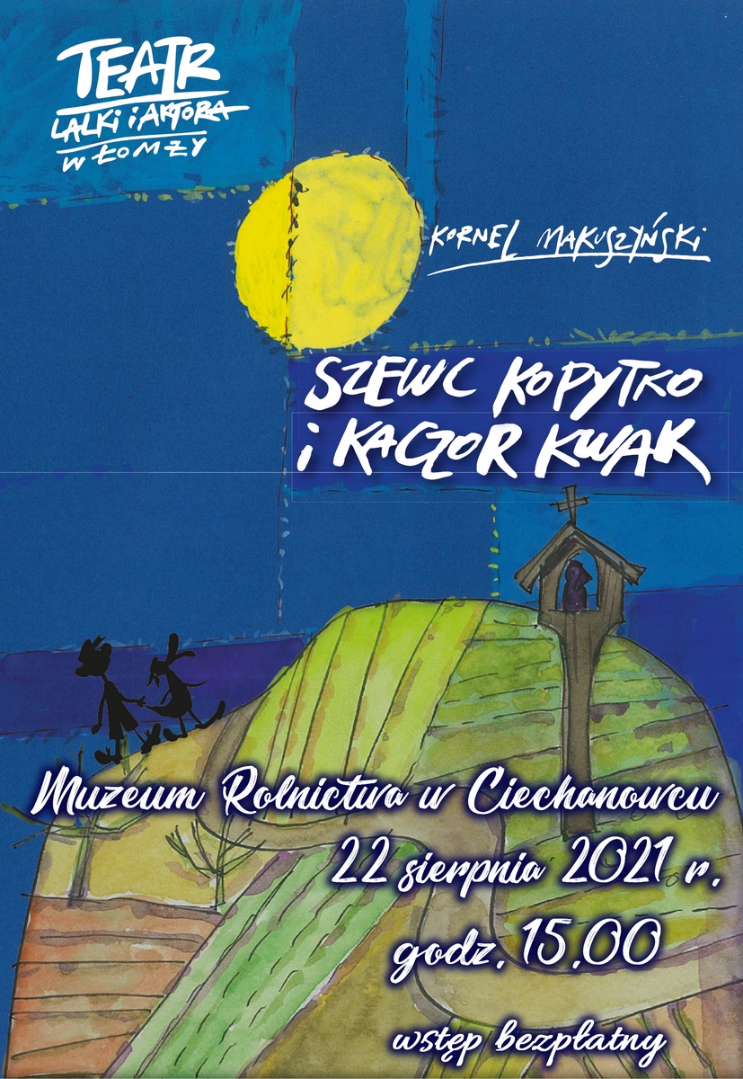 Dyrektor Teatru Lalki i Aktora w Łomży Jarosław Antoniuk oraz Dyrektor Muzeum Rolnictwa im. ks. Krzysztofa Kluka w Ciechanowcu Dorota Łapiak zapraszają na spektakl pt. „Szewc Kopytko i Kaczor Kwak”, który odbędzie się 22 sierpnia 2021 r. (niedziela) o godz. 15.00 na terenie ciechanowieckiego muzeum przy ul. Pałacowej 5.