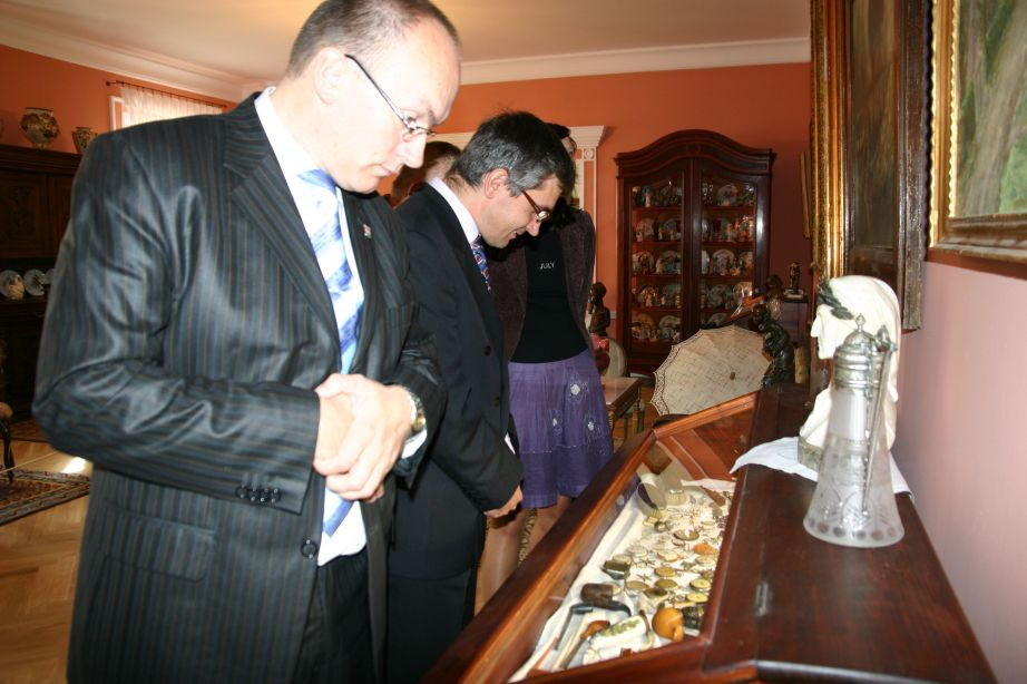 Obok witryny ustawiono dwie gabloty. Jedna z nich prezentuje kolekcję obrączek na serwetki oraz zbiór elementów dawnej zastawy stołowej w postaci różnego rodzaju srebrnych sztućców np. łyżek do cukru pudru, musztardy, karmienia niemowląt itp. W drugiej gablocie mieszczą się dziewiętnastowieczne zegarki kieszonkowe, biżuteria, kolekcja fajek oraz wiele innych ciekawych drobiazgów rodem z XIX wieku.