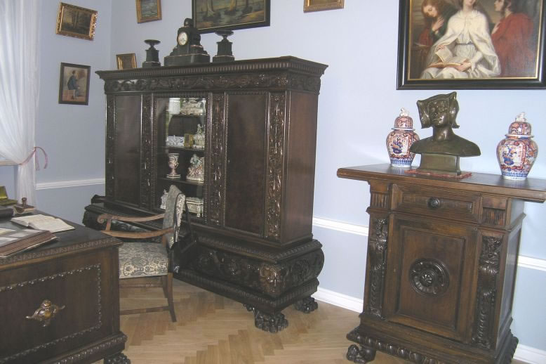 Pierwsze z pomieszczeń – Gabinet, zaaranżowane zostało w oparciu o eksponaty muzealne oraz wypożyczone. Masywne biurko, biblioteczka, kasa pancerna, fotele, krzesła, stół, utrzymane w stylu Chippendale, są zabytkami z przełomu XIX i XX stulecia.