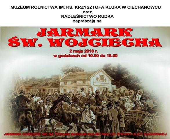 Jarmark Świętego Wojciecha, impreza handlowo-artystyczna nawiązująca do dawnych ciechanowieckich Jarmarków na Świętego Wojciecha, po raz kolejny miała miejsce w niedzielę 2 maja b.r. Przesunięcie w czasie imprezy spowodowane było Żałobą Narodową po katastrofie pod Smoleńskiem.