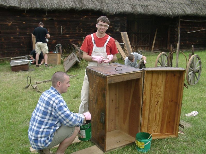 W dniach 19-23 lipca oraz od 26 do 30 lipca w Muzeum odbyli praktykę studenci pierwszego roku Wydziału Technologii Drewna SGGW w Warszawie w łącznej ilości 44 osoby. Studenci pracowali pod kierunkiem prof. dr hab. Krzysztofa Krajewskiego i dr Piotra Mańkowskiego. W ramach praktyki poddali konserwacji ratowniczej środkami chemicznymi 968 eksponatów w dziale etnografii na wystawach stałych i w magazynach oraz przeprowadzili konserwację generalną zabytkowej szafy rzeźbionej. Ponadto w dziale budownictwa wiejskiego pracowali przy konserwacji obiektów w Skansenie „B”, w tym młyna wodnego.