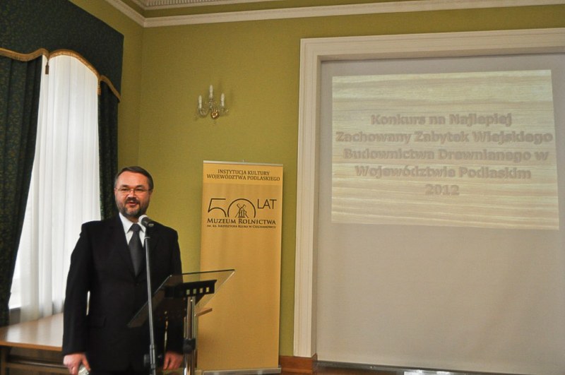 18 listopada w Muzeum Rolnictwa im. ks. Krzysztofa Kluka w Ciechanowcu odbyła się uroczystość podsumowania Konkursu na Najlepiej Zachowany Zabytek Wiejskiego Budownictwa Drewnianego w Województwie Podlaskim w 2012 r. i wręczenia nagród, dyplomów, katalogów prezentujących obiekty biorące udział w Konkursie i tabliczek do umocowania na domach laureatów.