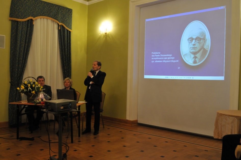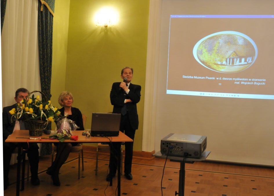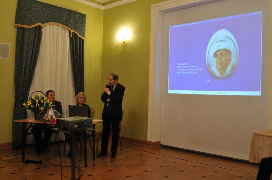 Spotkanie rozpoczęło się od uczczenia chwilą ciszy pamięci zmarłej rok temu pani profesor Ireny Stasiewicz - Jasiukowej. Następnie licznie przybyłych gości powitała zastępca dyrektora Muzeum pani Anna Wiśniewska, po czym przekazała głos autorowi publikacji - inż. Jerzemu Jasiukowi, który z wielkim sentymentem wspominał początki przyjaźni z ciechanowiecką placówką, a także kuluary powstania Muzeum Pisanki. Miłym akcentem, zgodnie z tradycją, był moment wręczenia inż. Jerzemu Jasiukowi pisanki z wizerunkiem świętego Jerzego, którą wykonał pan Wojciech Bogucki - kurator zbiorów Muzeum Pisanki.