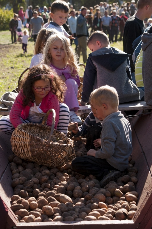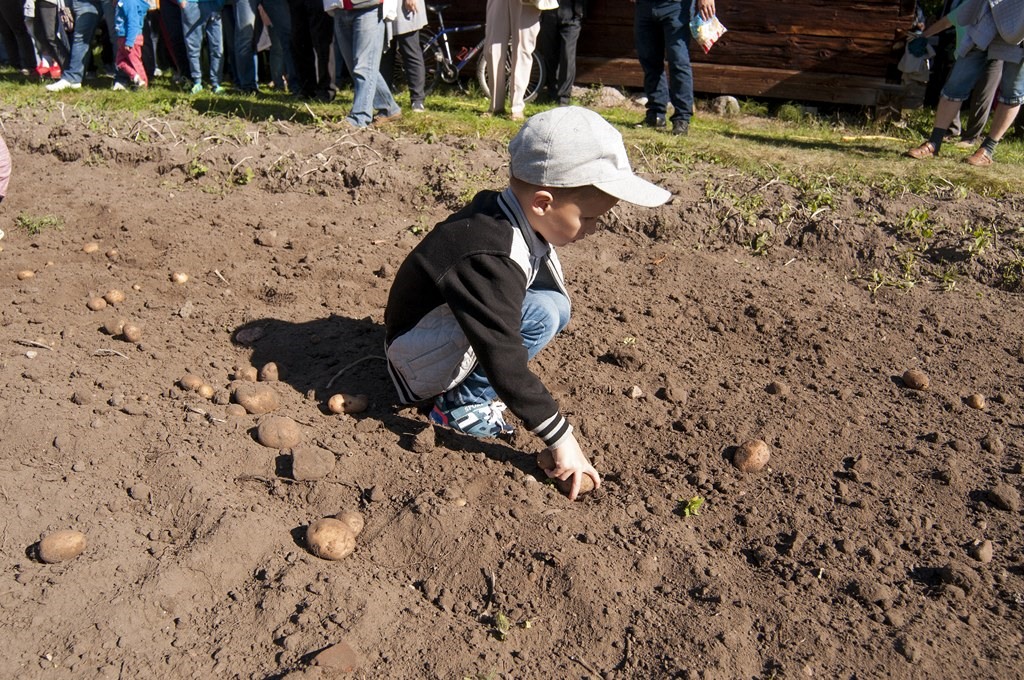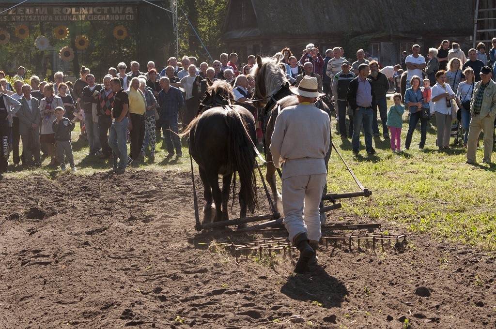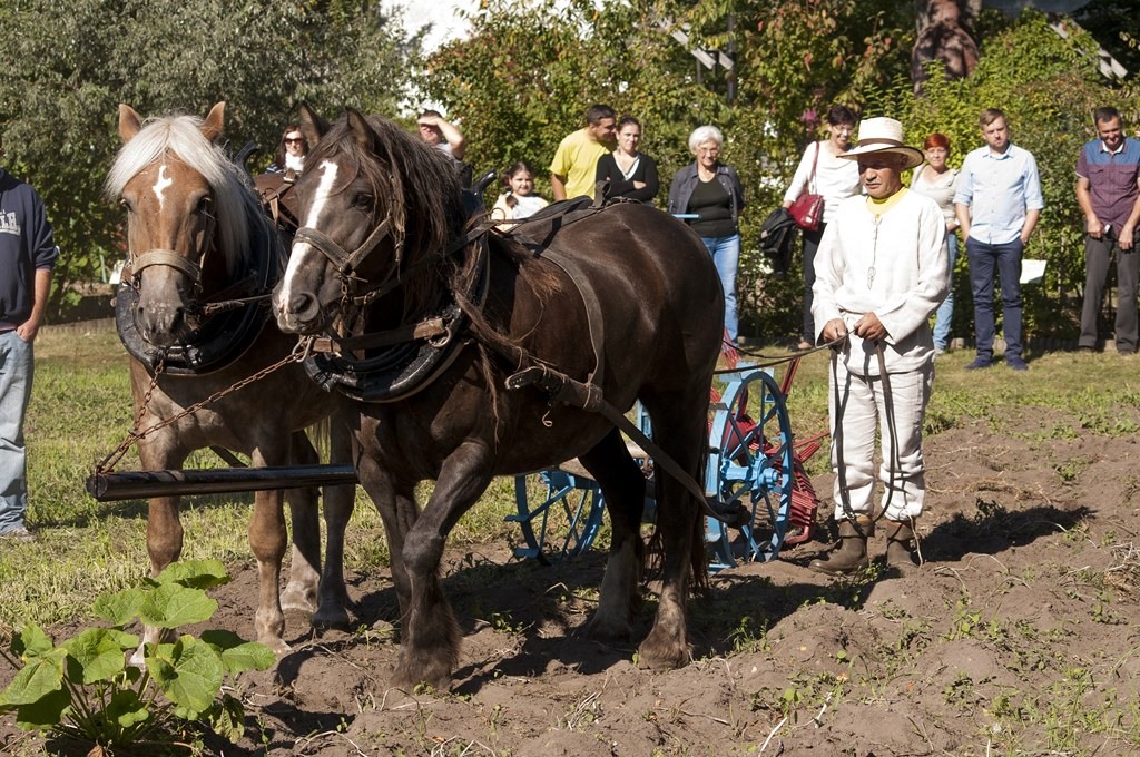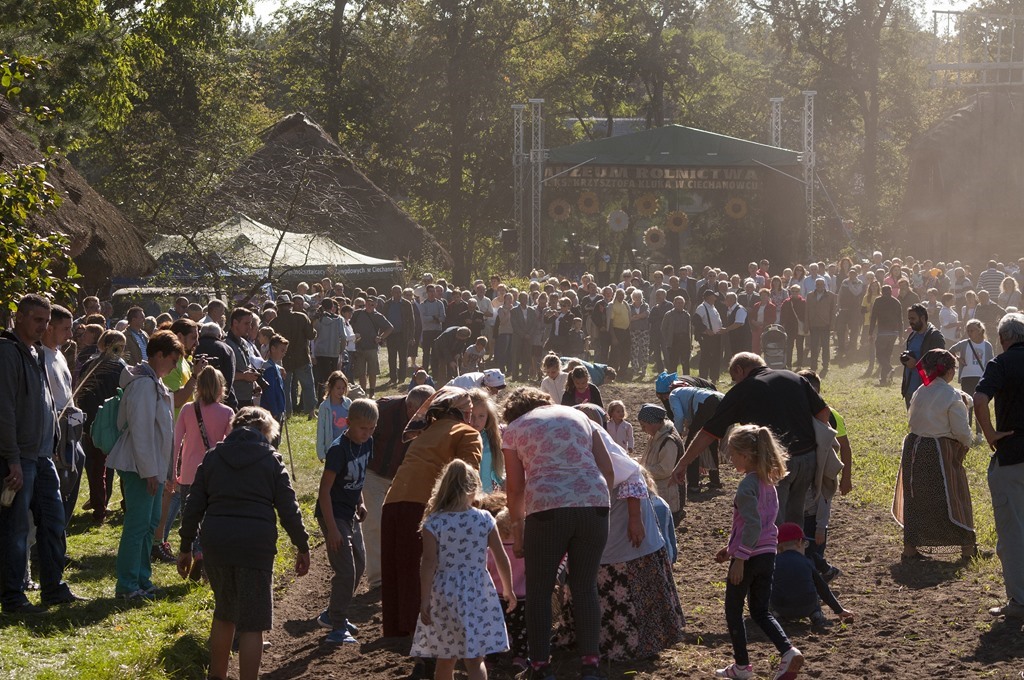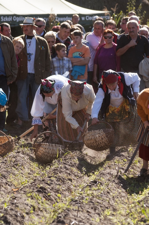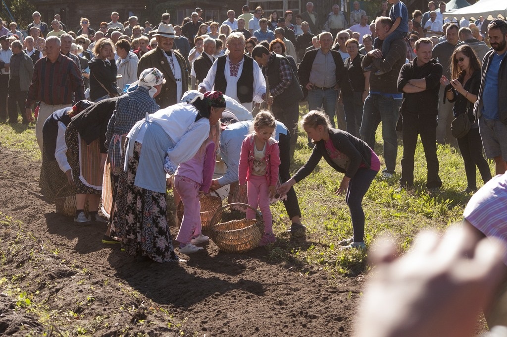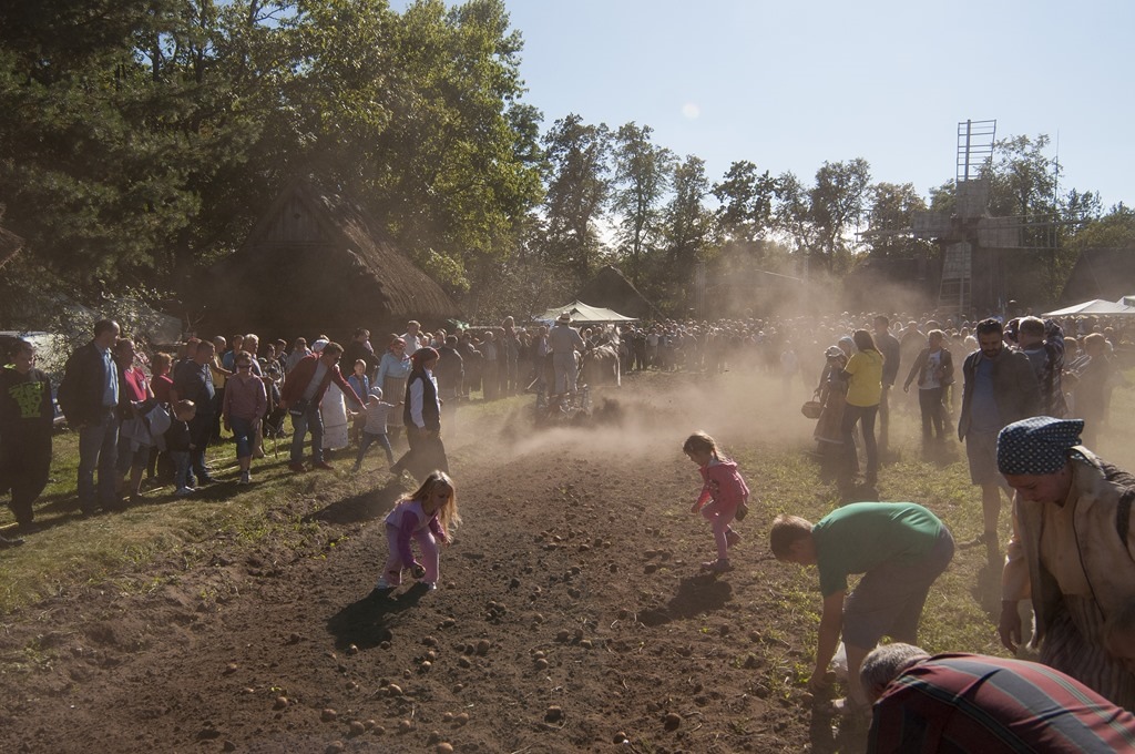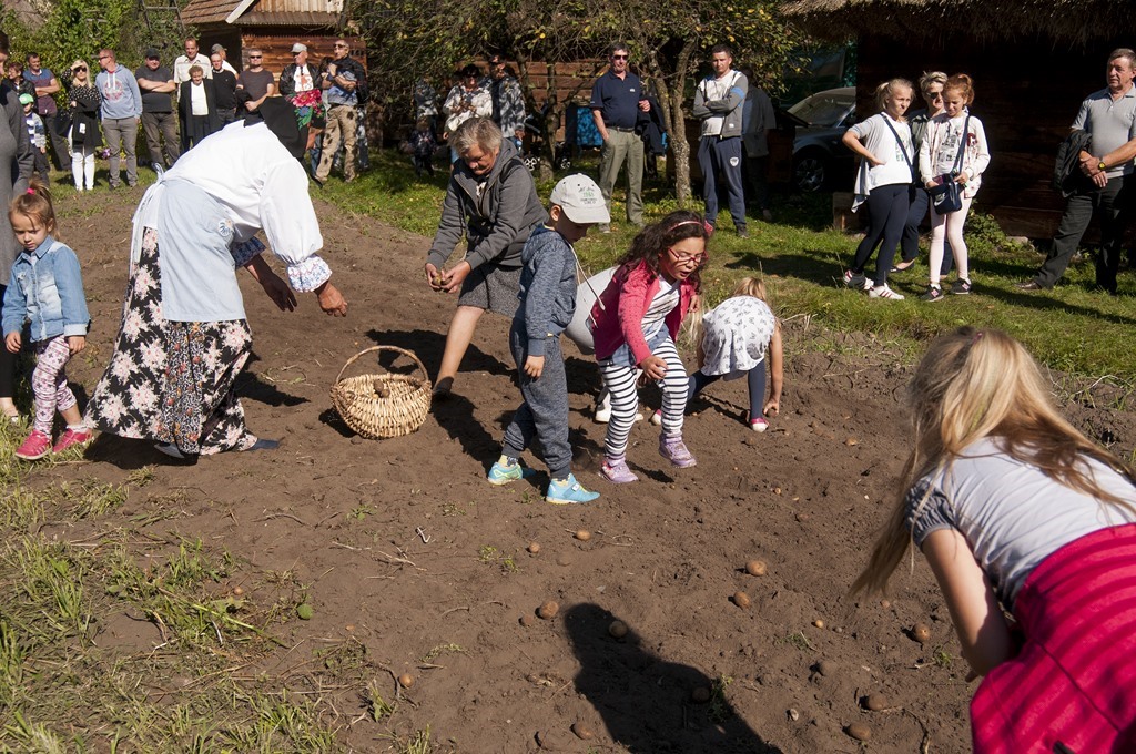 Wśród różnorodnej oferty imprez plenerowych, ten jesienny piknik stanowi najbogatsze w tradycje i zwyczaje wydarzenie etnograficzne w naszym muzeum. W scenerii wiejskiej zaprezentowaliśmy prace polowe i gospodarskie na dawnej wsi podlaskiej. Ten jesienny festyn rodzinny miał na celu przypomnienie i pokazanie tradycyjnych zwyczajów i obrzędów związanych z kopaniem ziemniaków i pracami gospodarskimi oraz domowymi w okresie jesiennym. Najważniejszym punktem programu był pokaz kopania ziemniaków motykami w wykonaniu zespołu ludowego Polne Maki z Dołubowa oraz kopaczką konną i tłoka - zbieranie ziemniaków za kopaczką z udziałem widzów. Po tym nast.ąpiło bronowanie kartofliska broną konną oraz orka.