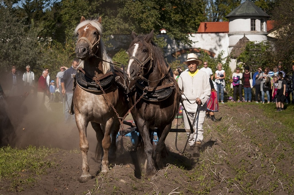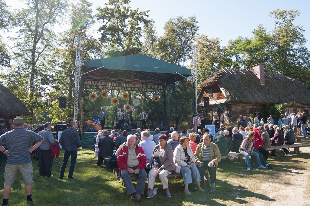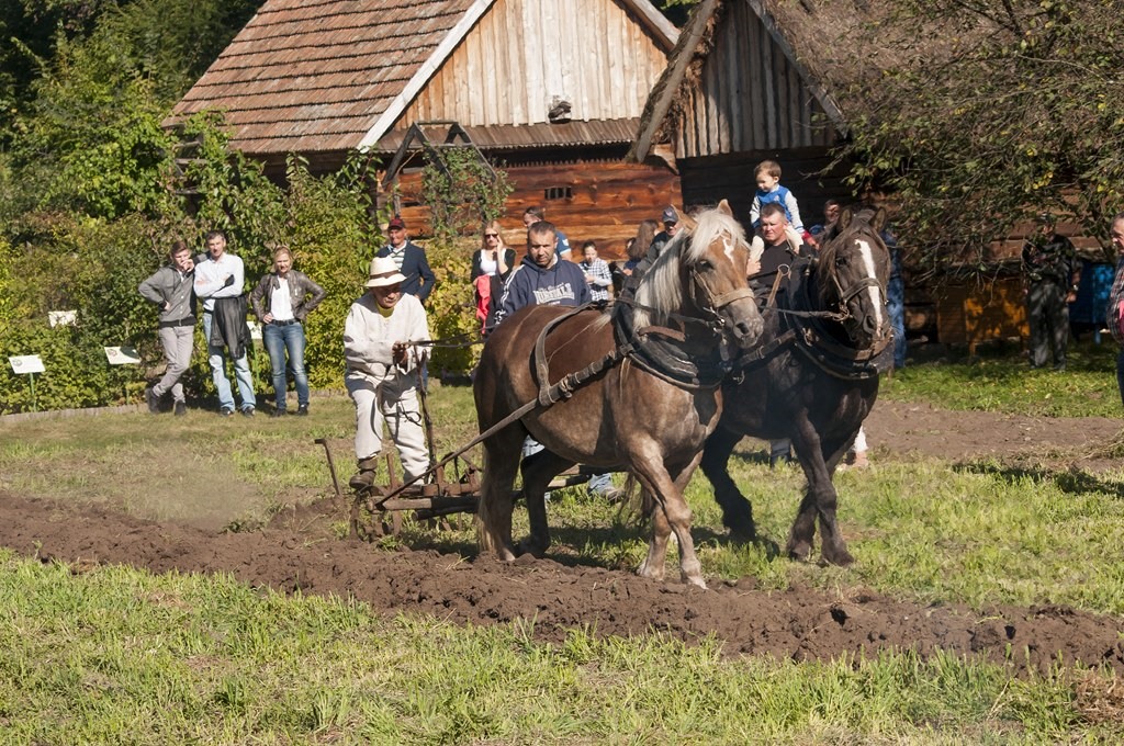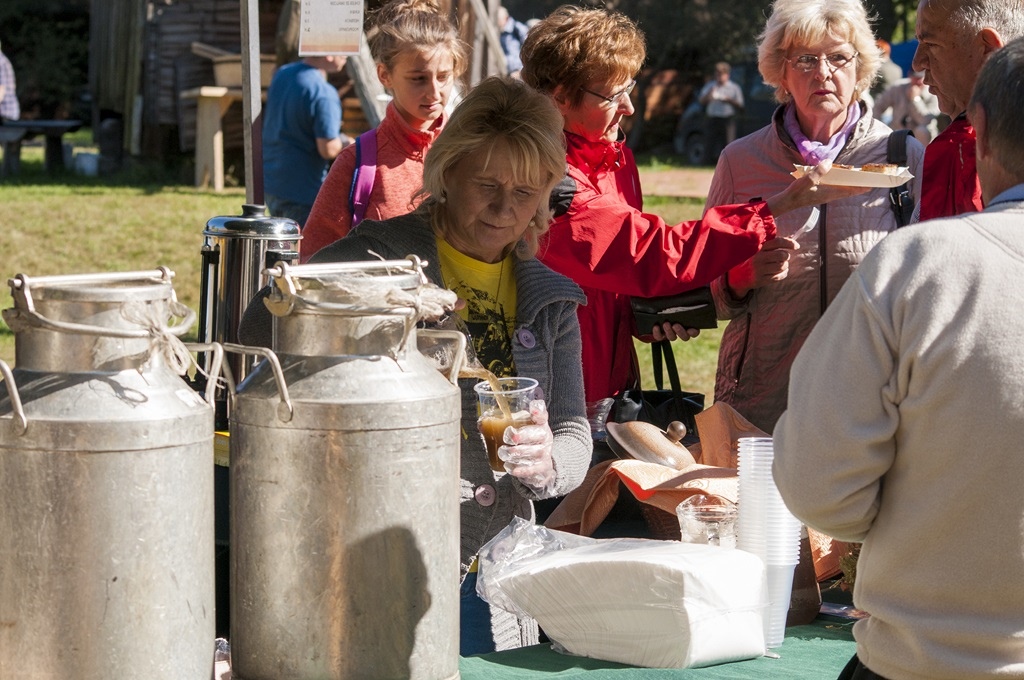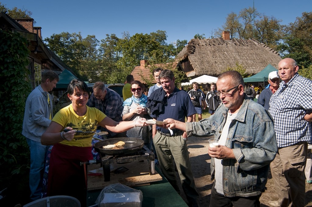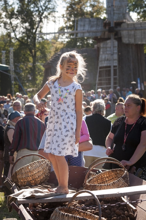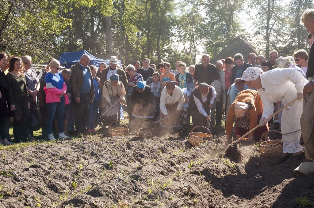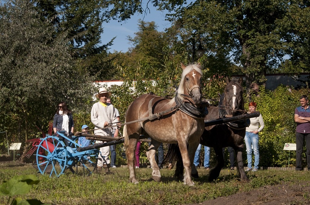 Wśród różnorodnej oferty imprez plenerowych, ten jesienny piknik stanowi najbogatsze w tradycje i zwyczaje wydarzenie etnograficzne w naszym muzeum. W scenerii wiejskiej zaprezentowaliśmy prace polowe i gospodarskie na dawnej wsi podlaskiej. Ten jesienny festyn rodzinny miał na celu przypomnienie i pokazanie tradycyjnych zwyczajów i obrzędów związanych z kopaniem ziemniaków i pracami gospodarskimi oraz domowymi w okresie jesiennym. Najważniejszym punktem programu był pokaz kopania ziemniaków motykami w wykonaniu zespołu ludowego Polne Maki z Dołubowa oraz kopaczką konną i tłoka - zbieranie ziemniaków za kopaczką z udziałem widzów. Po tym nast.ąpiło bronowanie kartofliska broną konną oraz orka.