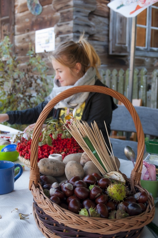 Doskonałą zabawę stanowiły ziemniaczane konkursy z nagrodami, tj. obieranie ziemniaków na czas, wrzucanie ziemniaków do koszyka, jedzenie baby ziemniaczanej na czas. Powodzeniem cieszyły się zajęcia manualne, takie jak wykonywanie laleczek ze słomy i gałganków, jesiennych korali z jarzębiny i liści, stempli z ziemniaków czy ludzików z kasztanów.