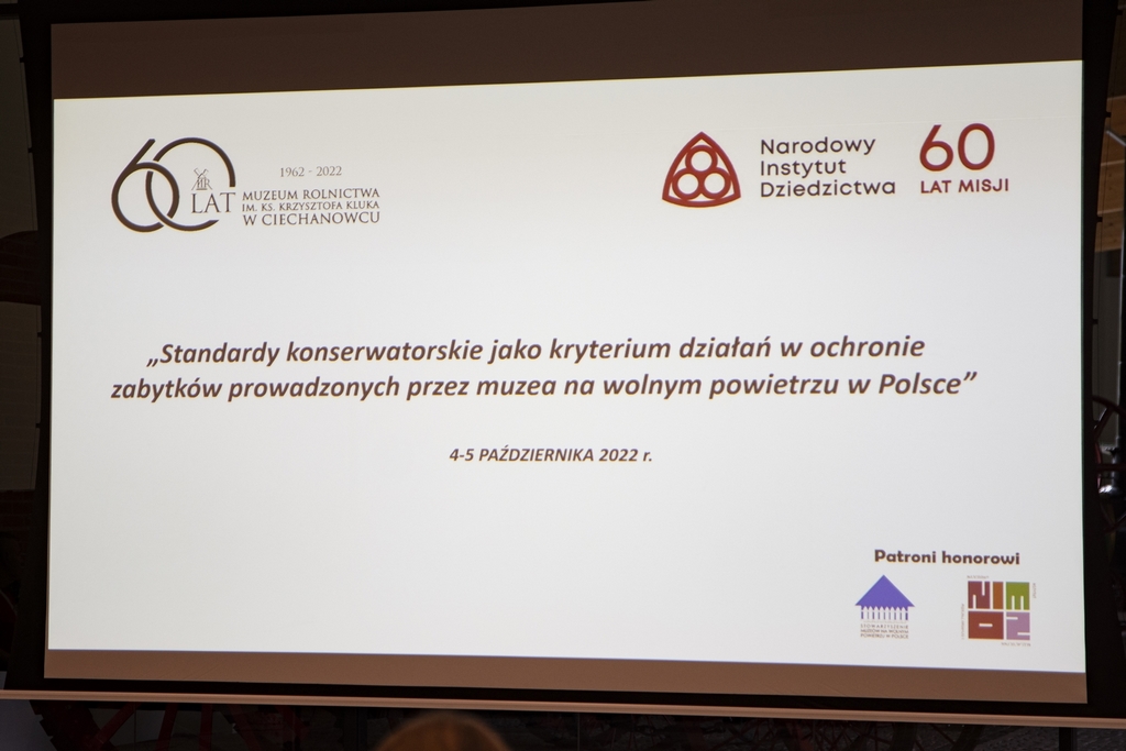 W ramach obchodów jubileuszowych 60-lecia Muzeum Rolnictwa im. ks. Krzysztofa Kluka w Ciechanowcu, w dniach 4 i 5 października 2022 r. odbyła się konferencja naukowa „Standardy konserwatorskie jako kryterium działań w ochronie zabytków prowadzonych przez muzea na wolnym powietrzu w Polsce” objęta Patronatem Honorowym Stowarzyszenia Muzeów na Wolnym Powietrzu w Polsce i Narodowego Instytutu Muzealnictwa i Ochrony Zbiorów. Organizatorami wydarzenia byli: Muzeum Rolnictwa w Ciechanowcu oraz Narodowy Instytut Dziedzictwa.