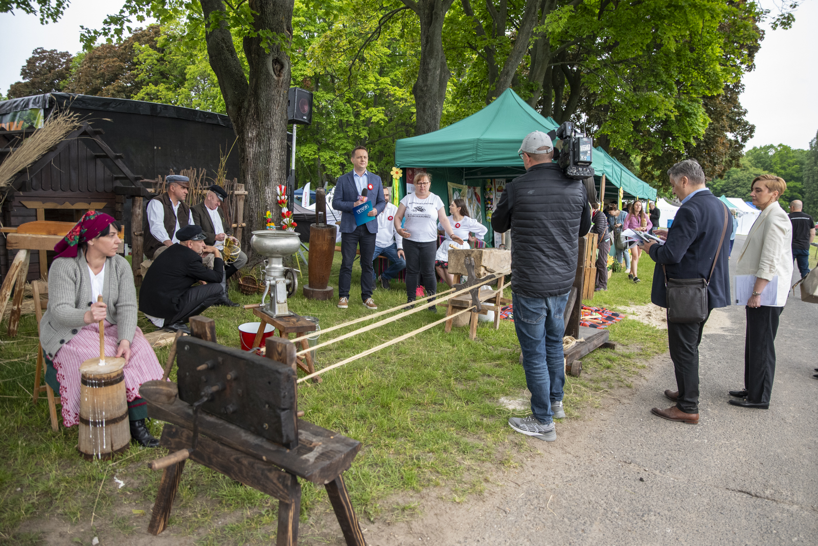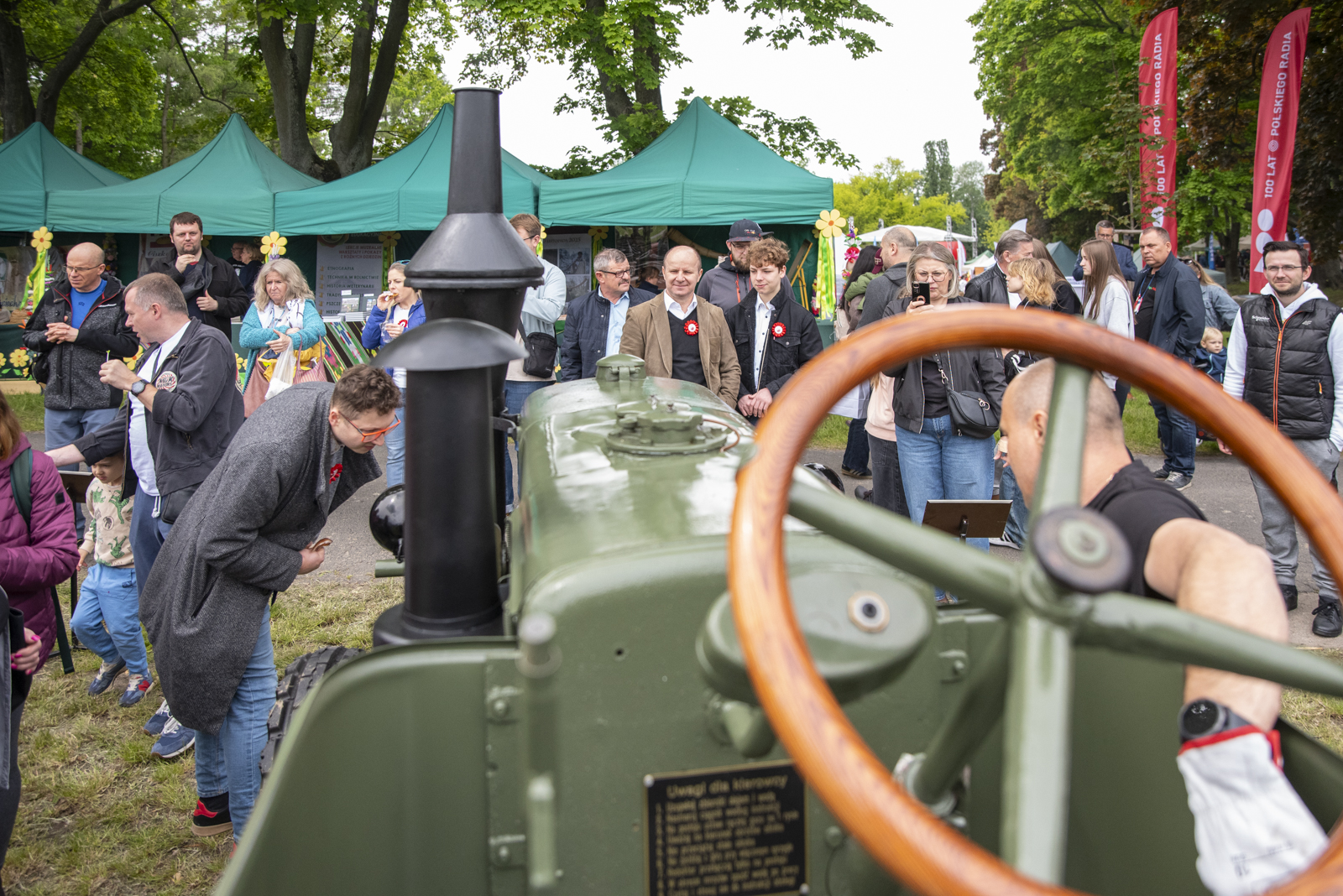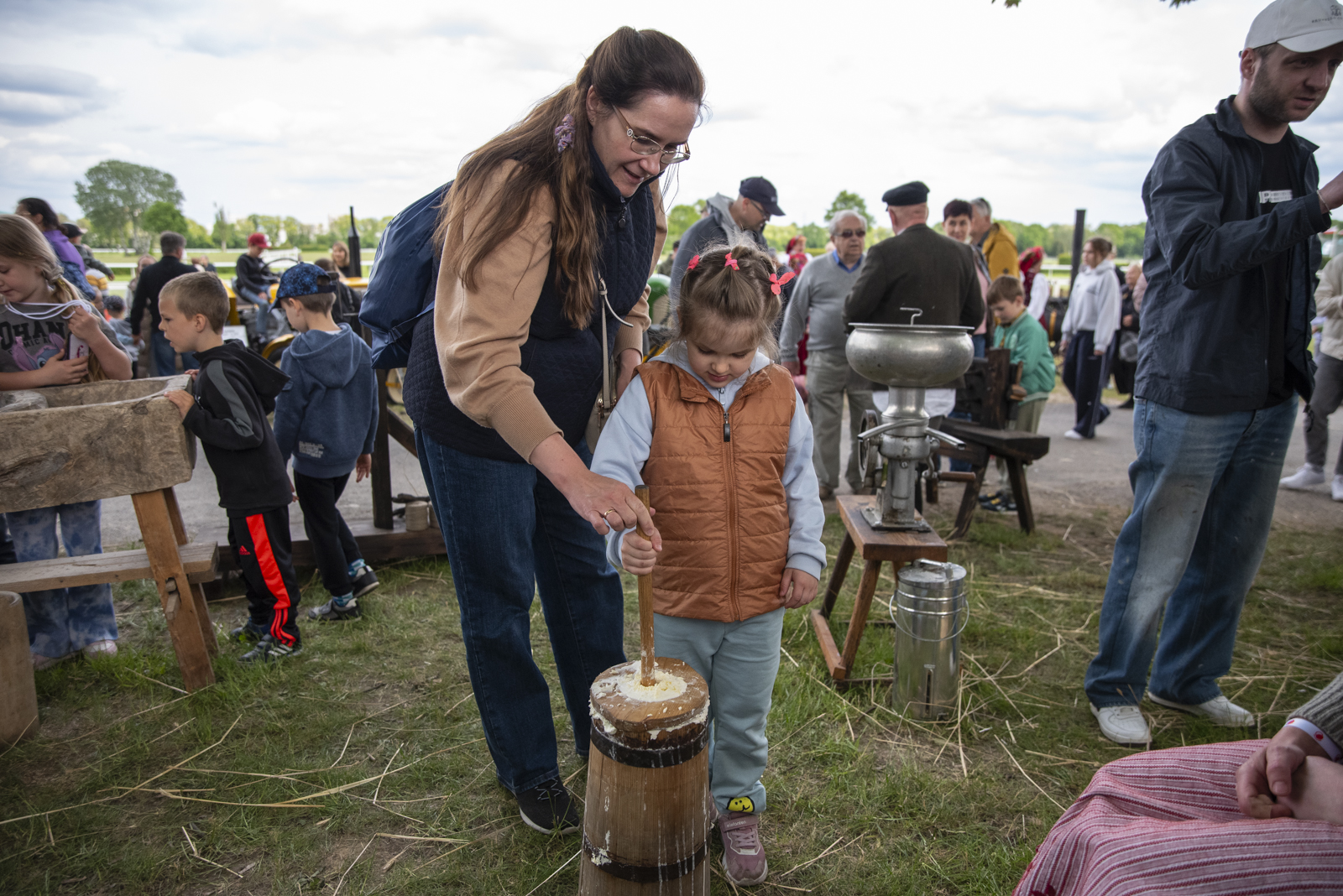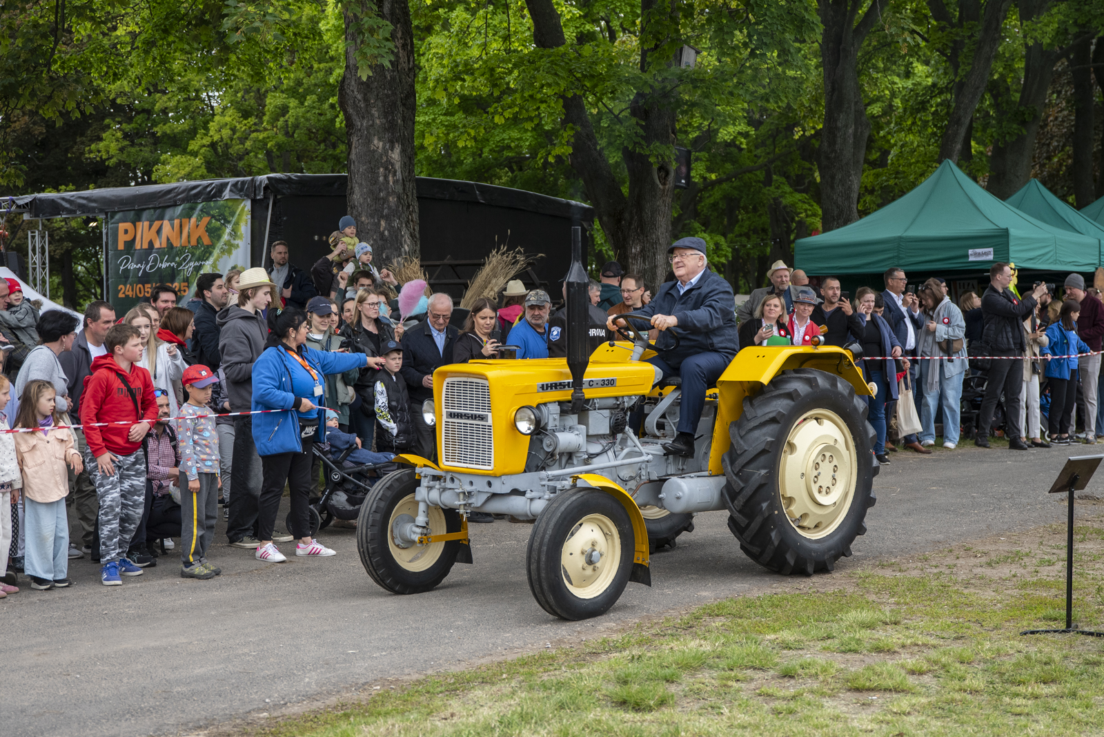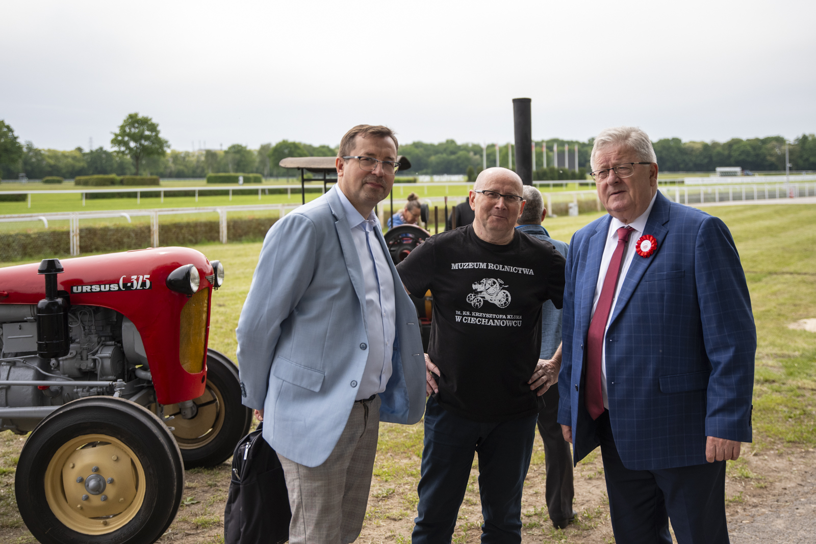 24 maja 2025 r. nasze muzeum na zaproszenie Ministerstwa Rolnictwa i Rozwoju Wsi uczestniczyło w „Pikniku Poznaj Dobrą Żywność” organizowanym na Torze Wyścigów Konnych Służewiec w Warszawie. Nasze stoisko cieszyło się bardzo dużym zainteresowaniem uczestników imprezy, a także mediów ogólnopolskich i lokalnych. Szczególny entuzjazm wśród dorosłych i dzieci wzbudziły przywiezione przez nas zabytkowe ciągniki w liczbie 9 szt. (polskie Ursusy, Porsche, Lanz), na których można było zrobić pamiątkowe zdjęcie, jak również zobaczyć je w ruchu. Przygotowane przez nas interaktywne stoiska etnograficzne (obróbka ziarna w żarnach na mąkę i w stępie na kaszę, tkanie gobelinu, składanie wiejskiej chaty, kręcenie snopków i słomianych warkoczy, wyplatanie koszyków, dojenie krowy, odwirowywanie śmietany i robienie masła, wyplatanie lin i sznurów, degustacja naszego piwa jałowcowego, ciechanowieckiego chleba i podlaskich wędlin) nie mogły opędzić się od zainteresowanych.
