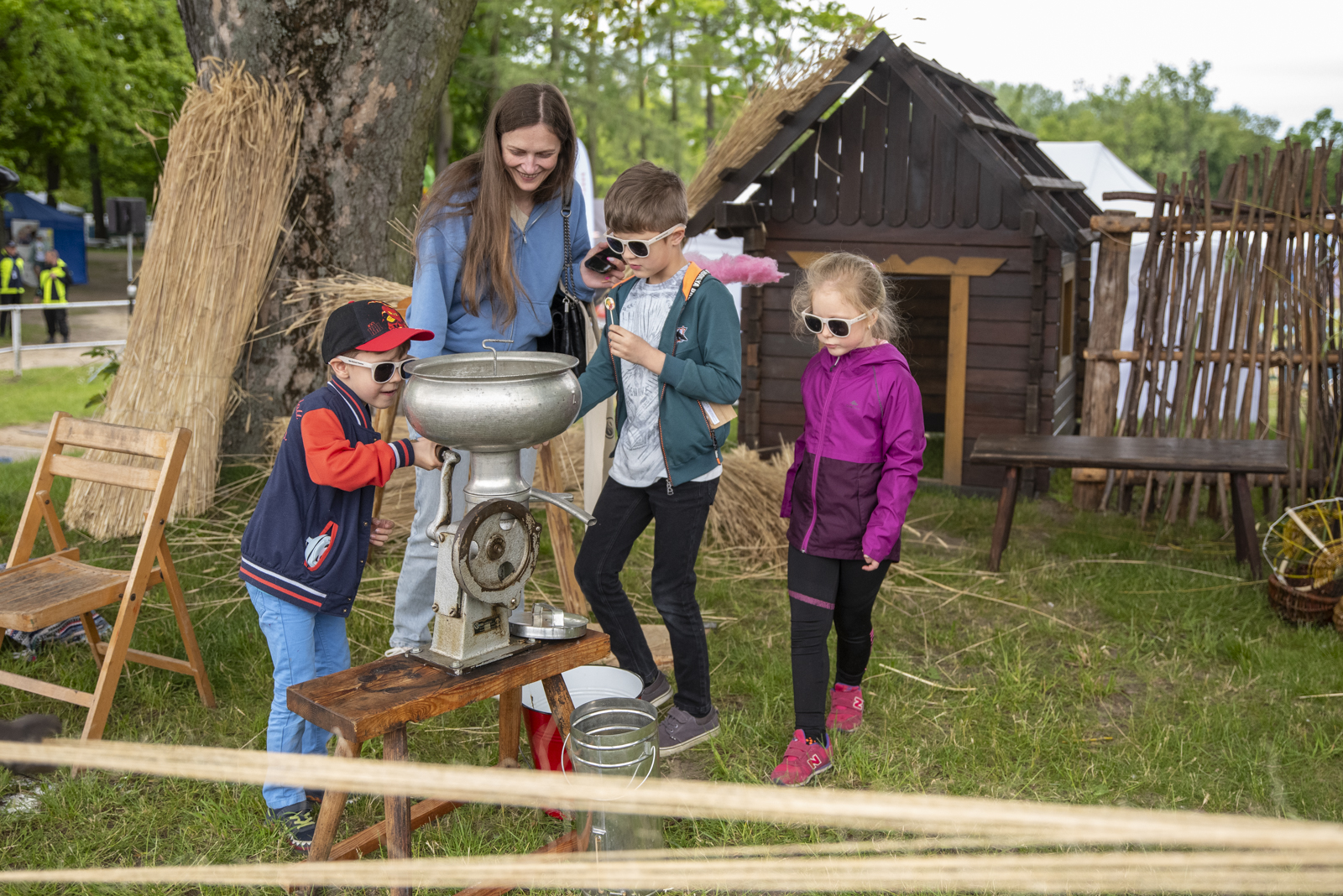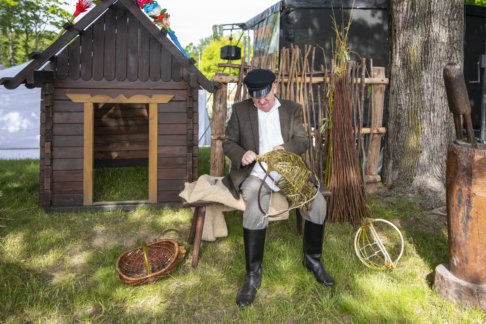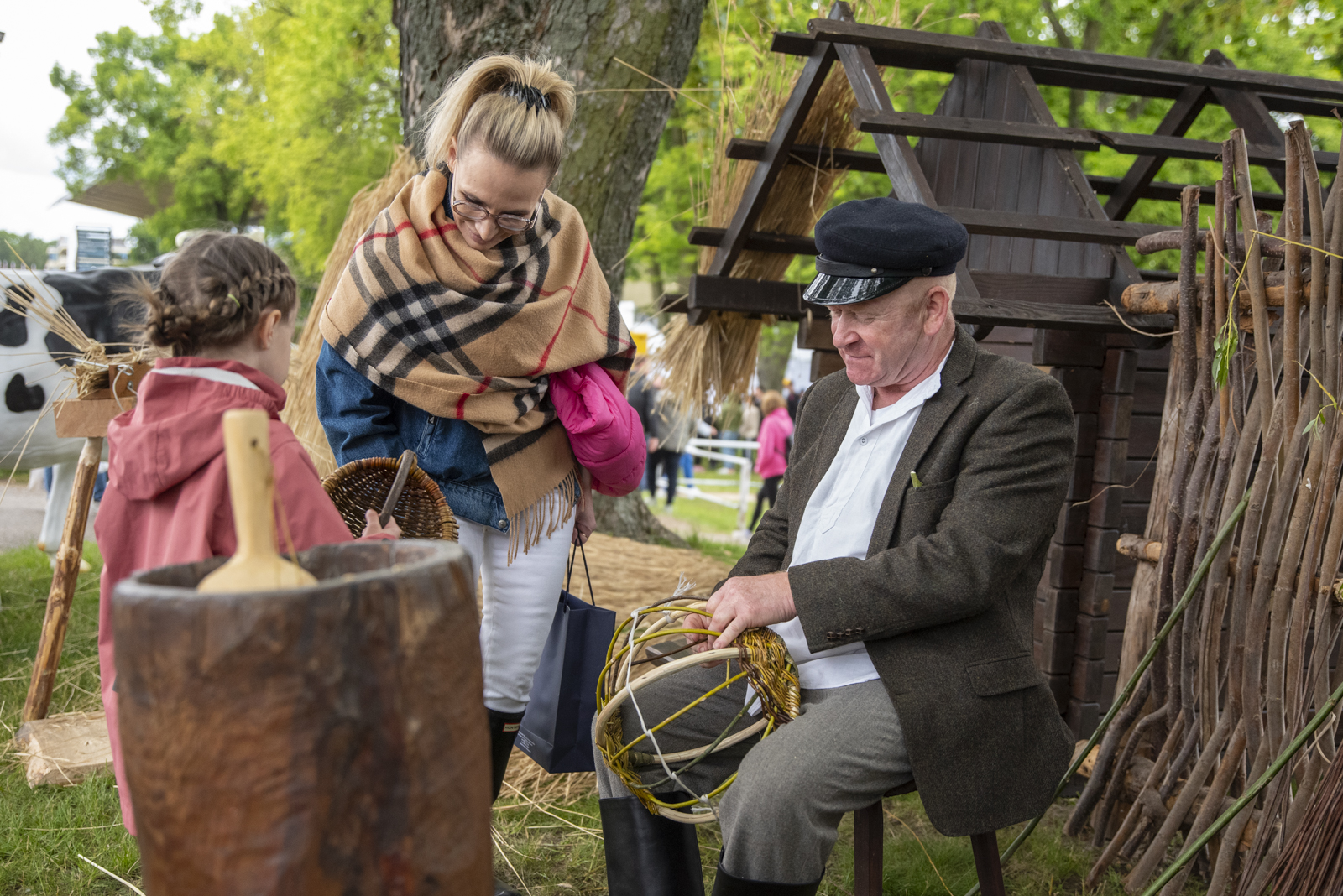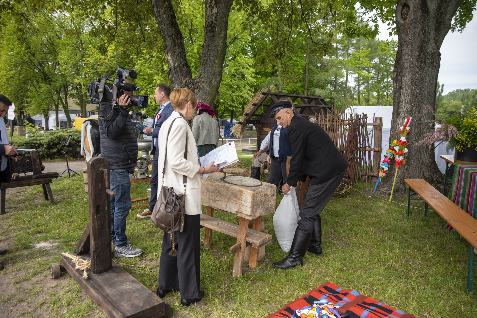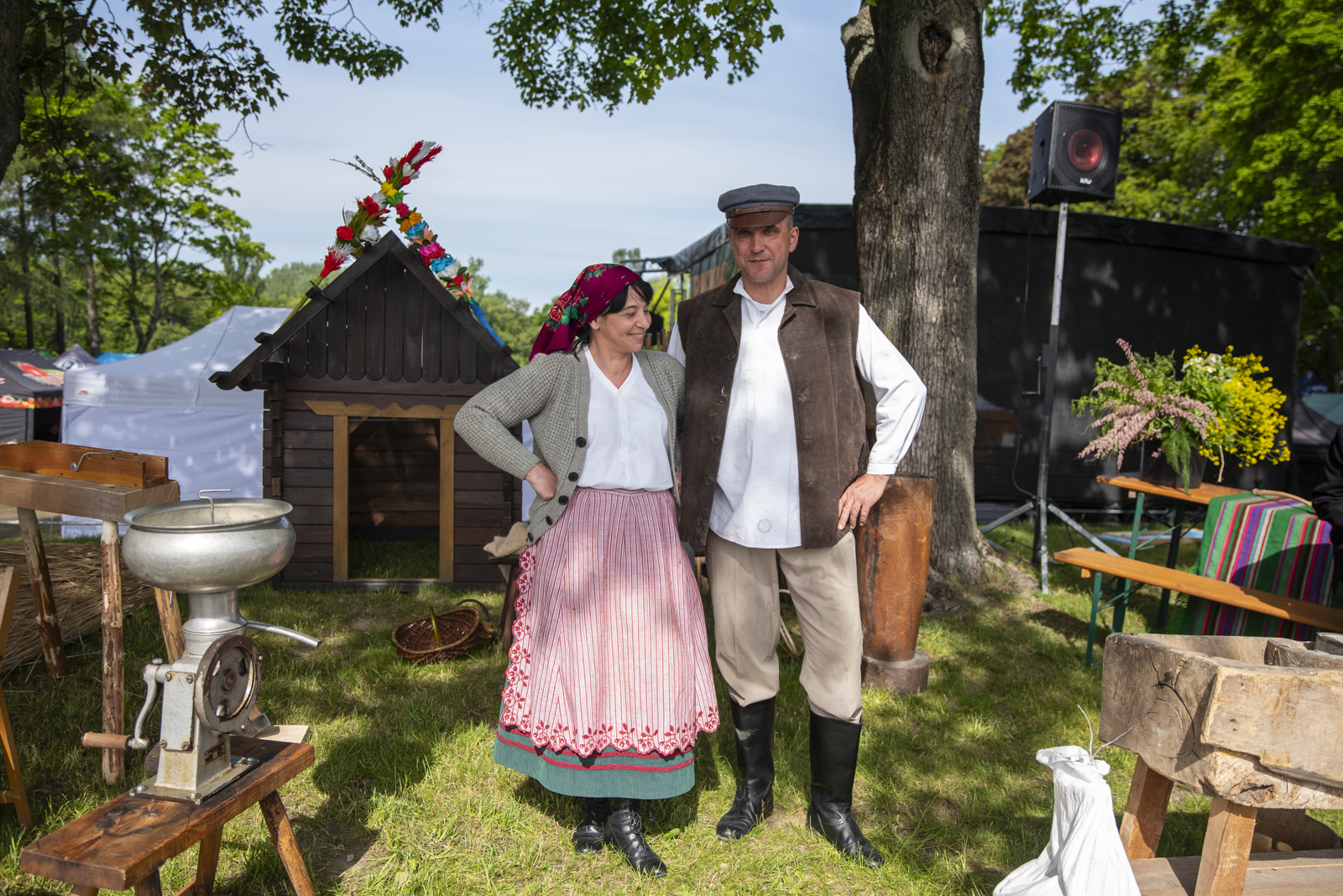 24 maja 2025 r. nasze muzeum na zaproszenie Ministerstwa Rolnictwa i Rozwoju Wsi uczestniczyło w „Pikniku Poznaj Dobrą Żywność” organizowanym na Torze Wyścigów Konnych Służewiec w Warszawie. Nasze stoisko cieszyło się bardzo dużym zainteresowaniem uczestników imprezy, a także mediów ogólnopolskich i lokalnych. Szczególny entuzjazm wśród dorosłych i dzieci wzbudziły przywiezione przez nas zabytkowe ciągniki w liczbie 9 szt. (polskie Ursusy, Porsche, Lanz), na których można było zrobić pamiątkowe zdjęcie, jak również zobaczyć je w ruchu. Przygotowane przez nas interaktywne stoiska etnograficzne (obróbka ziarna w żarnach na mąkę i w stępie na kaszę, tkanie gobelinu, składanie wiejskiej chaty, kręcenie snopków i słomianych warkoczy, wyplatanie koszyków, dojenie krowy, odwirowywanie śmietany i robienie masła, wyplatanie lin i sznurów, degustacja naszego piwa jałowcowego, ciechanowieckiego chleba i podlaskich wędlin) nie mogły opędzić się od zainteresowanych.