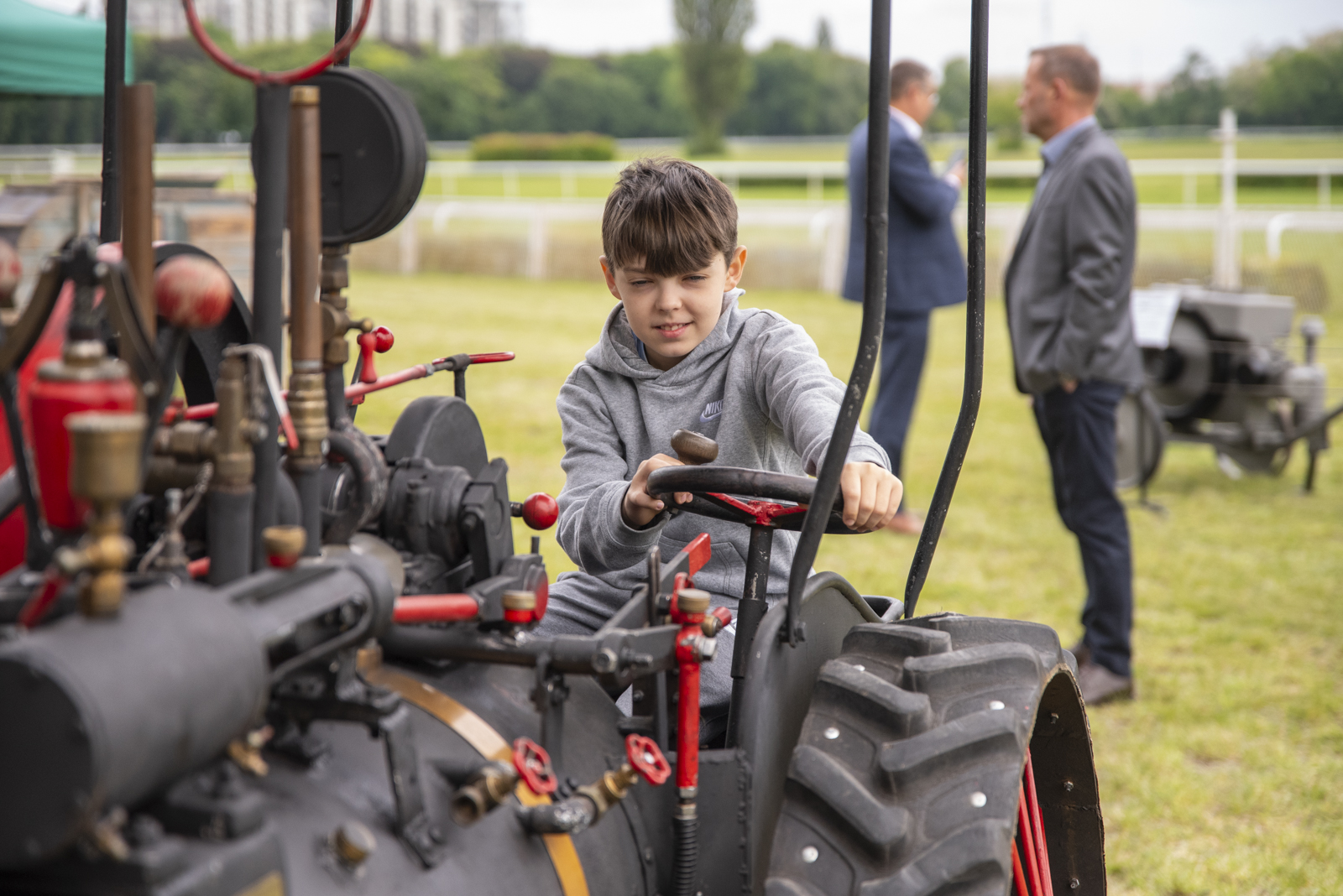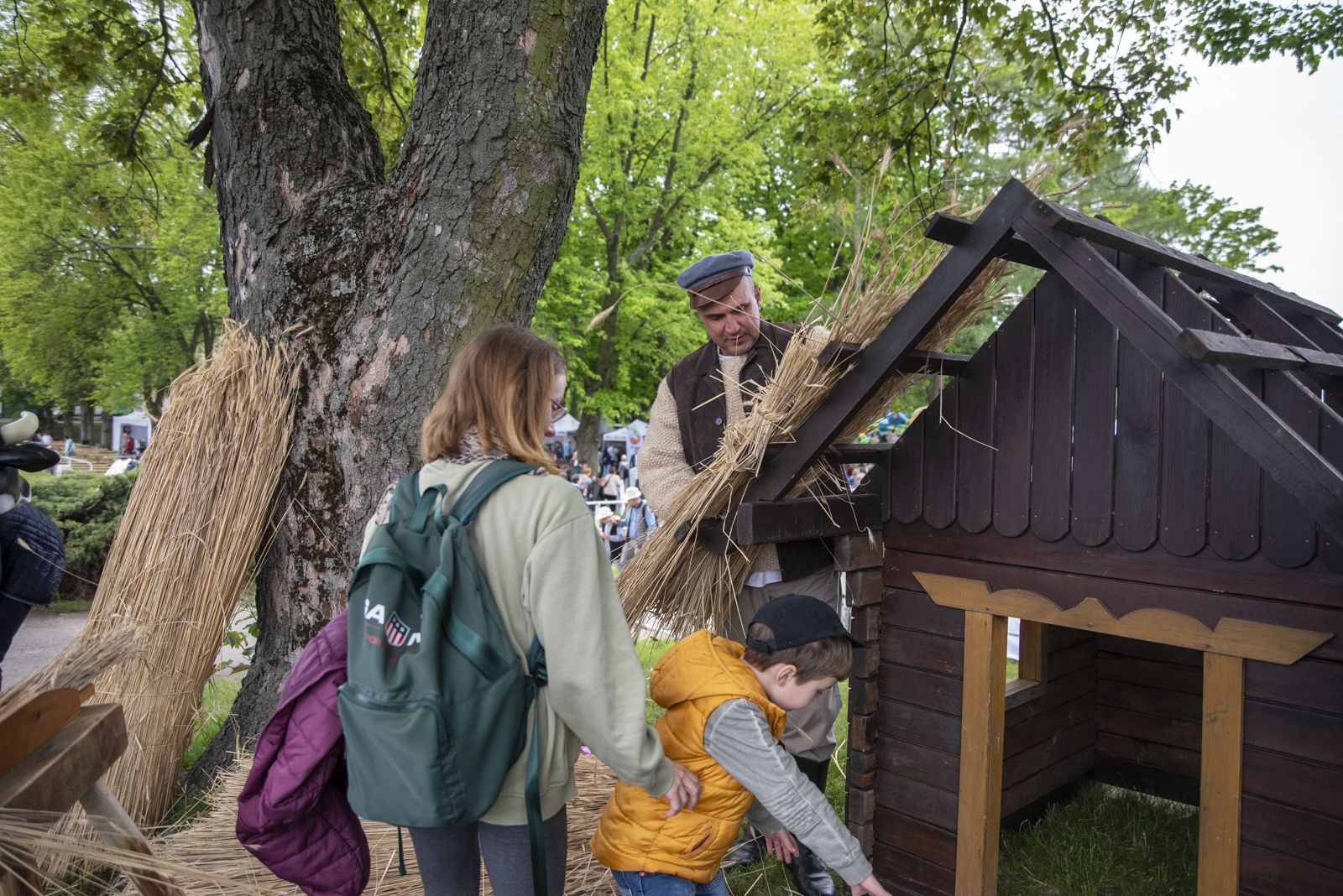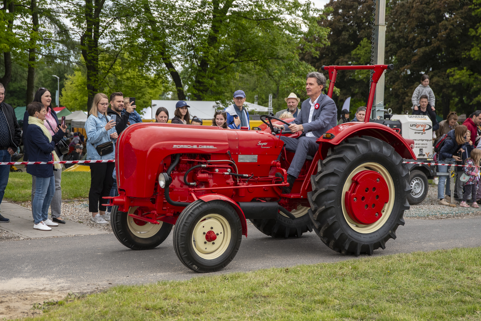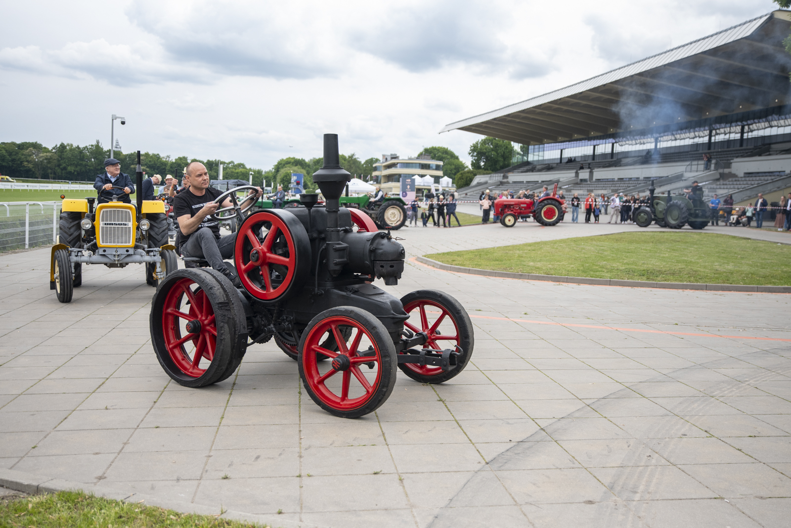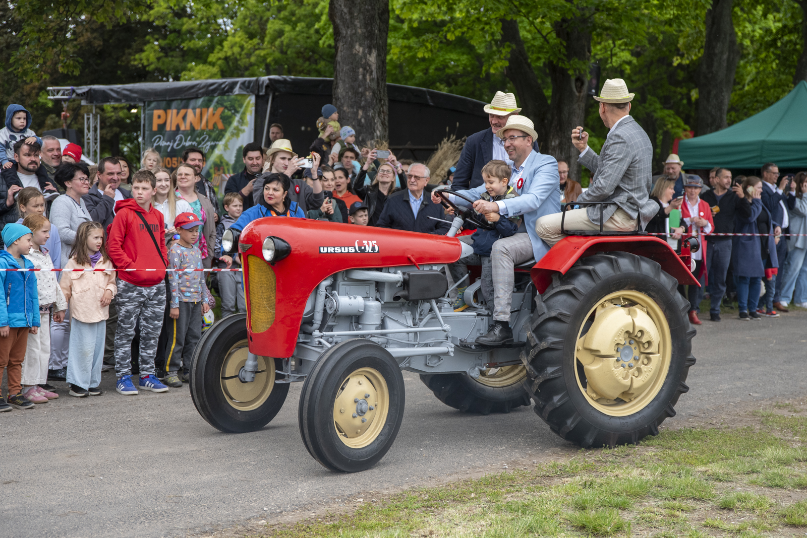 24 maja 2025 r. nasze muzeum na zaproszenie Ministerstwa Rolnictwa i Rozwoju Wsi uczestniczyło w „Pikniku Poznaj Dobrą Żywność” organizowanym na Torze Wyścigów Konnych Służewiec w Warszawie. Nasze stoisko cieszyło się bardzo dużym zainteresowaniem uczestników imprezy, a także mediów ogólnopolskich i lokalnych. Szczególny entuzjazm wśród dorosłych i dzieci wzbudziły przywiezione przez nas zabytkowe ciągniki w liczbie 9 szt. (polskie Ursusy, Porsche, Lanz), na których można było zrobić pamiątkowe zdjęcie, jak również zobaczyć je w ruchu. Przygotowane przez nas interaktywne stoiska etnograficzne (obróbka ziarna w żarnach na mąkę i w stępie na kaszę, tkanie gobelinu, składanie wiejskiej chaty, kręcenie snopków i słomianych warkoczy, wyplatanie koszyków, dojenie krowy, odwirowywanie śmietany i robienie masła, wyplatanie lin i sznurów, degustacja naszego piwa jałowcowego, ciechanowieckiego chleba i podlaskich wędlin) nie mogły opędzić się od zainteresowanych.