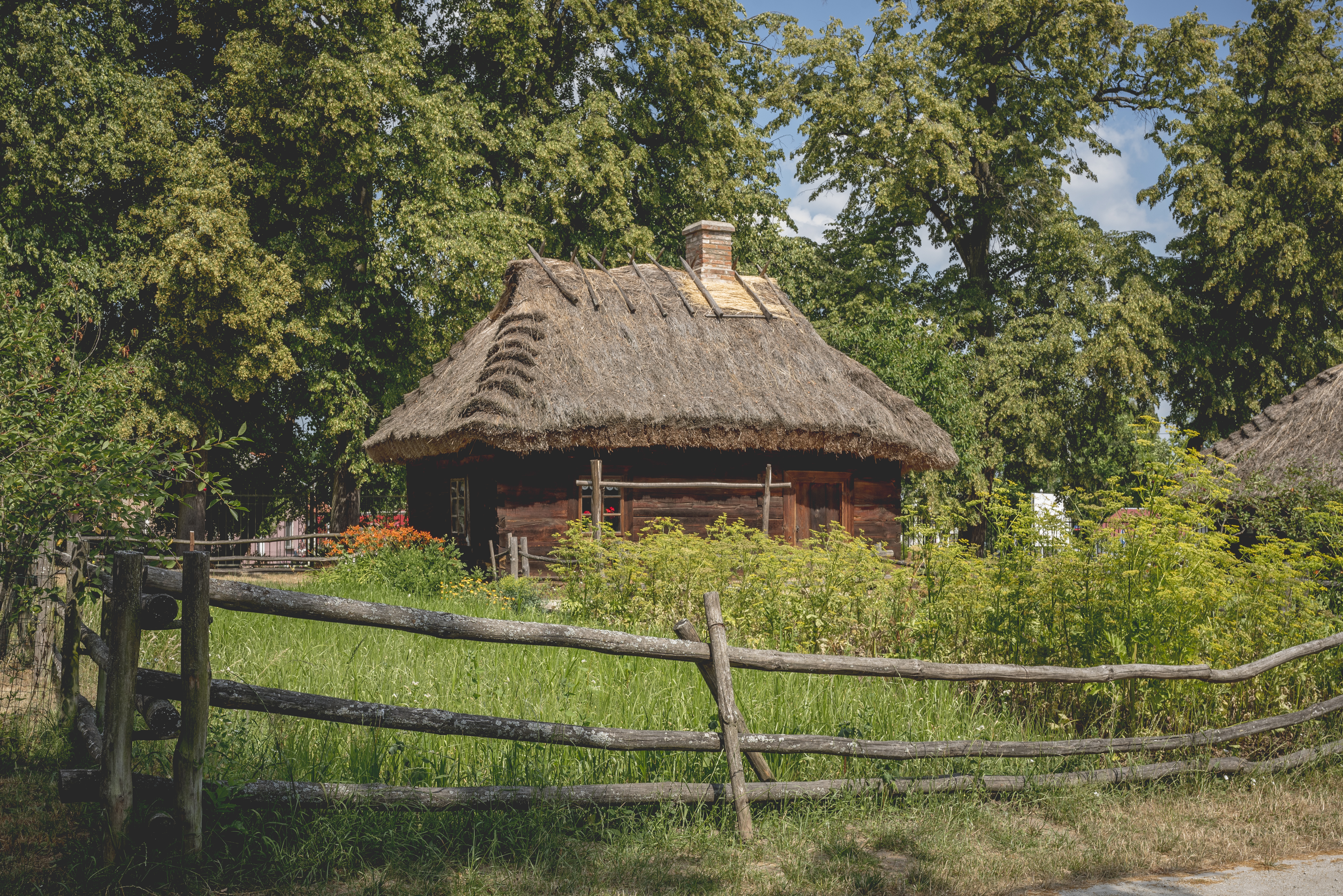W skansenie w Muzeum Rolnictwa w Ciechanowcu jedna z chat nosi znamiona tego typu budynku. Mowa tu o zbudowanej około 1851 roku chałupie ze wsi Piętki-Gręzki. Reprezentuje ona mieszkanie wyrobnika czyli biednego chłopa trudniącego się pracą najemną lub rzemiosłem, zazwyczaj bezrolnego lub z niewielką ilością gruntu. Posiada ona ściany konstrukcji wieńcowej, wzniesione na planie prostokąta o wymiarach 6,5 x 4,5m. Dach jest czterospadowy, poszyty słomą. W szczytach dachu pod kalenicą widoczne są otwory do odprowadzania dymu, co utwierdza, że chałupa pierwotnie mogła być kurną. Jest to typowa, dla czasów pańszczyźnianych, chata jednoizbowa. Wnętrze półtoratraktowe. Złożone jest z jednej izby, narożnej sieni oraz usytuowanej w głębi za nią komory. We wszystkich pomieszczeniach polepa gliniana. W chałupie możemy obejrzeć, zrekonstruowane urządzenie ogniowo-ogrzewcze charakterystyczne dla wsi podlaskich w XIX wieku. Ekspozycja wnętrza prezentuje mieszkanie bezrolnej, wielopokoleniowej, rodziny chłopskiej z przełomu XIX/XX wieku. Życie rodziny koncentrowało się w izbie. Komora służyła jako miejsce przechowywania odzieży, sprzętów oraz zapasu jedzenia. Warto zwrócić uwagę na prostotę wyposażenia. Szlaban czyli skrzyniowa ława z oparciem, służył w dzień do siedzenia, a w nocy jako łózko. To jeden z bardziej charakterystycznych mebli spotykanych w wiejskich chatach…. Ale o nim już w następnym artykule 😊