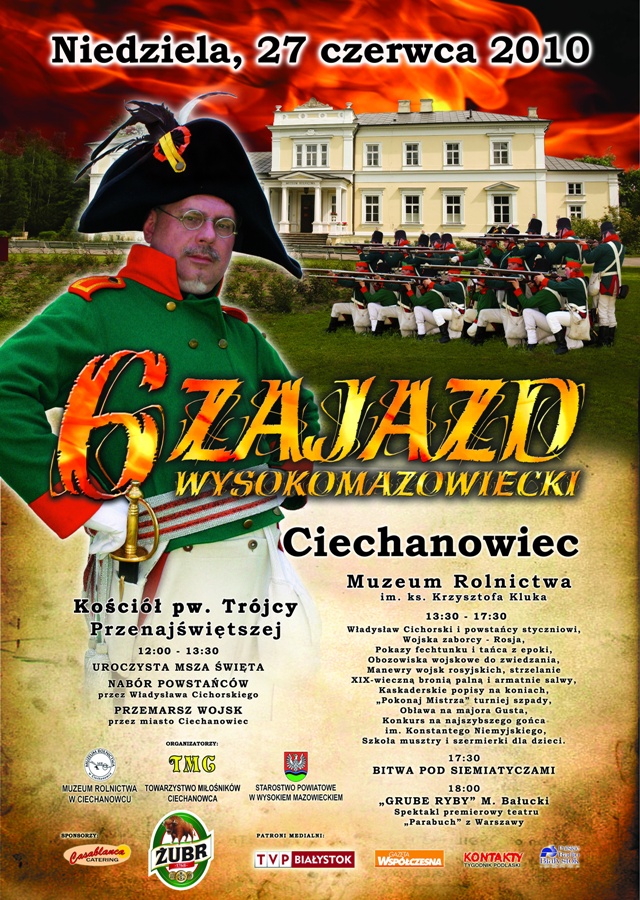 Muzeum Rolnictwa im. ks. Krzysztofa Kluka w Ciechanowcu wraz ze współorganizatorami - Towarzystwem Miłośników Ciechanowca i Starostwem Powiatowym w Wysokiem Mazowieckiem po raz szósty przygotowało Zajazd Wysokomazowiecki - imprezę plenerową skierowaną do szerokiego kręgu odbiorców zainteresowanych tradycją i historią regionu. Motywem przewodnim tegorocznej edycji było powstanie styczniowe oraz uczczenie 145. rocznicy śmierci ks. Stanisława Brzóski.