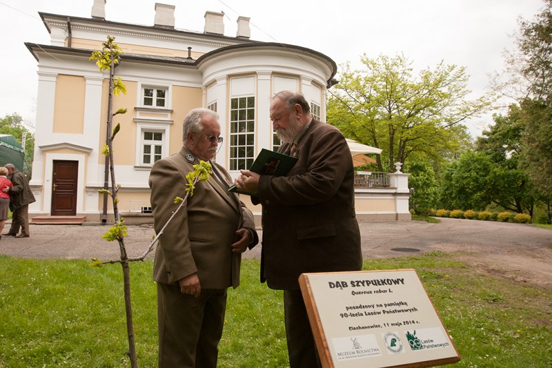 Historii Lasów Państwowych dotyczyła też wystawa czasowa zorganizowana przez Centrum Informacyjne Lasów Państwowych z siedzibą w Warszawie. Tak się złożyło, że jubileusz Lasów Państwowych zbiegł się z 30-leciem pracy zawodowej wielce zasłużonego dla rozwoju Nadleśnictwa Rudka i niezawodnego współpracownika Muzeum Pana Nadleśniczego Grzegorza Marka Godlewskiego. Z tej okazji dyrekcja Muzeum uhonorowała Pana Nadleśniczego medalem Zasłużony dla kultury polskiej, przyznanym przez Ministra Kultury i Dziedzictwa Narodowego. Natomiast współpracownicy i przyjaciele wręczyli Nadleśniczemu pamiątkową szablę ze stosownym grawerunkiem. Szczególnym punktem obchodów było posadzenie pamiątkowego dębu z ukrytą w jego korzeniach "kapsułą czasu" w postaci zamkniętego w butelce listu, zredagowanego dla przyszłych pokoleń z podpisami świadków tego zdarzenia.