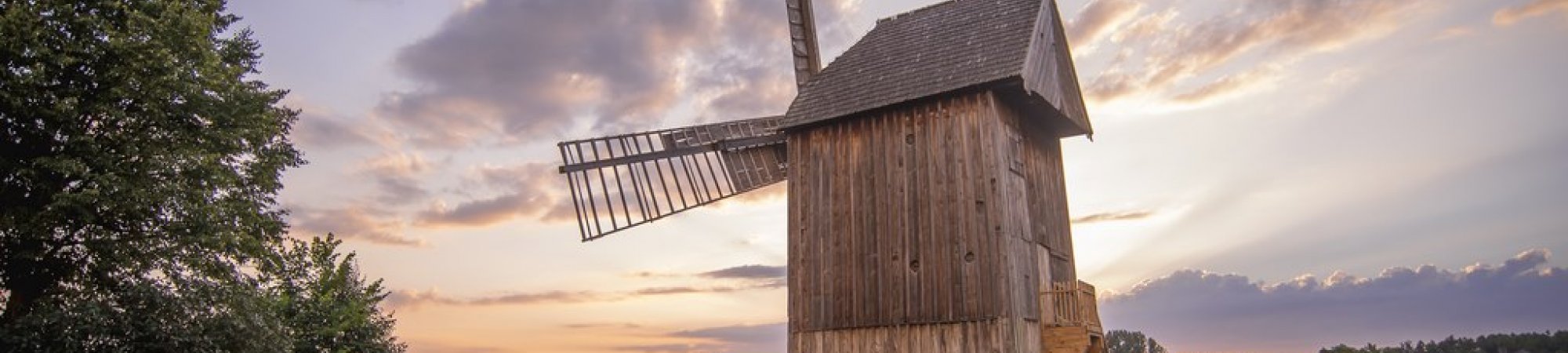 Wiatrak „koźlak” in situ, wybudowany pod koniec pierwszej połowy XIX wieku, jest obiektem zamiejscowym Muzeum Rolnictwa. Obiekt dwukondygnacyjny na planie zbliżonym do kwadratu, ściany obite pionowo deskami i listwami, dach dwuspadowy z naczółkiem od strony skrzydeł pokryty gontem. Wiatrak wyposażony w jedną parę kamieni i system odsiewczy do mąki pytlowej. Obiekt technicznie sprawny.