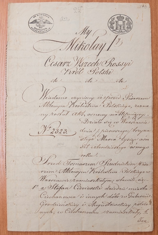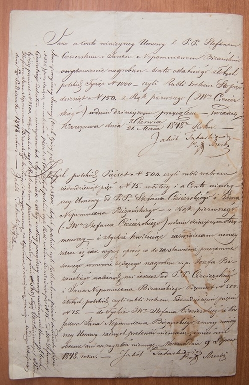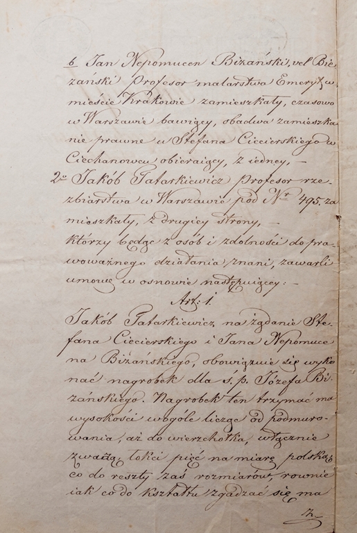 Umowa, zawarta w Warszawie 1(13) marca 1848 roku, pomiędzy Stefanem Ciecierskim i Janem Nepomucenem Bizańskim – malarzem z Krakowa