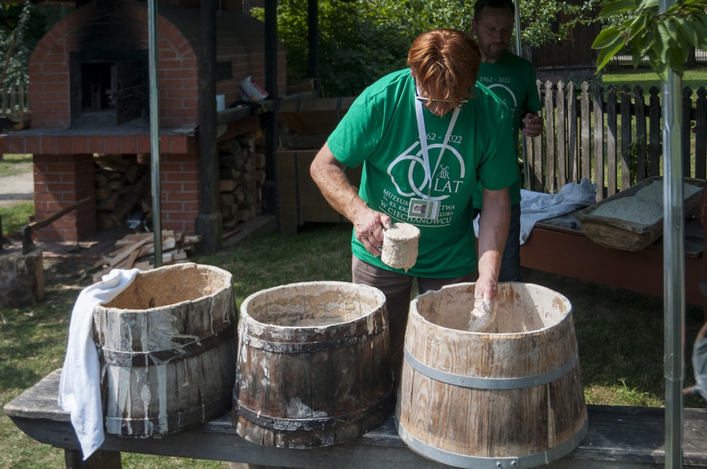 W polowym piecu chlebowym przy wiatraku przez cały dzień wypiekany był wiejski chleb na zakwasie, którym można było się poczęstować. Tu również można było posłuchać o zwyczajach związanych z pieczeniem chleba.