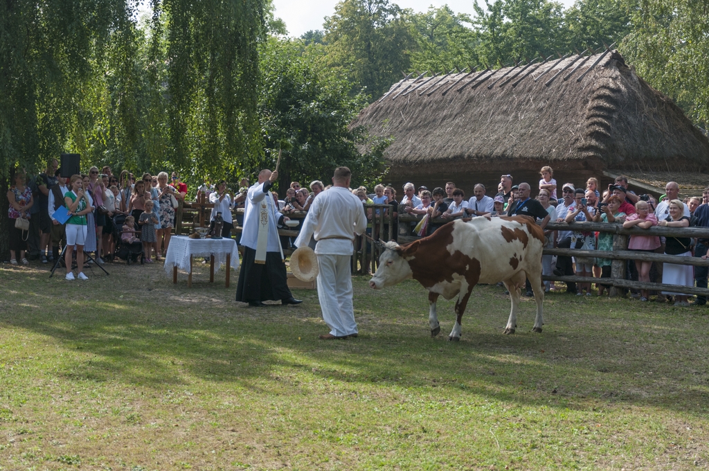W jednej ze skansenowskich zagród odbył się pokaz święcenia zwierząt, w którym udział wzięły muzealne zwierzęta: krowa, konie, owce, kozy oraz ptactwo. Zwierzęta poświęcił proboszcz parafii pw. Matki Boskiej Fatimskiej w Ciechanowcu – ks. Tomasz Tymiński. Dawniej, zwyczaj święcenia zwierząt przeprowadzano z okazji uroczystości kościelnych na Św. Rocha, który miał chronić ludzi i zwierzęta przed zarazami i wszelkimi chorobami.