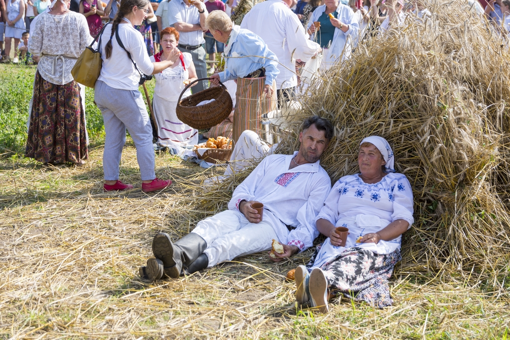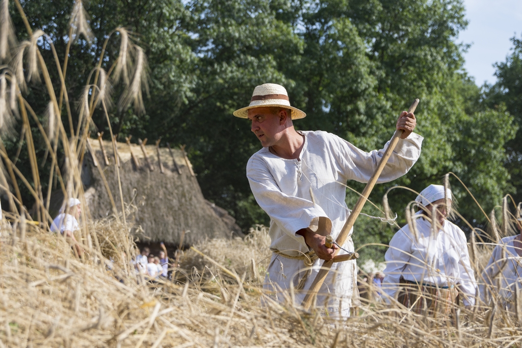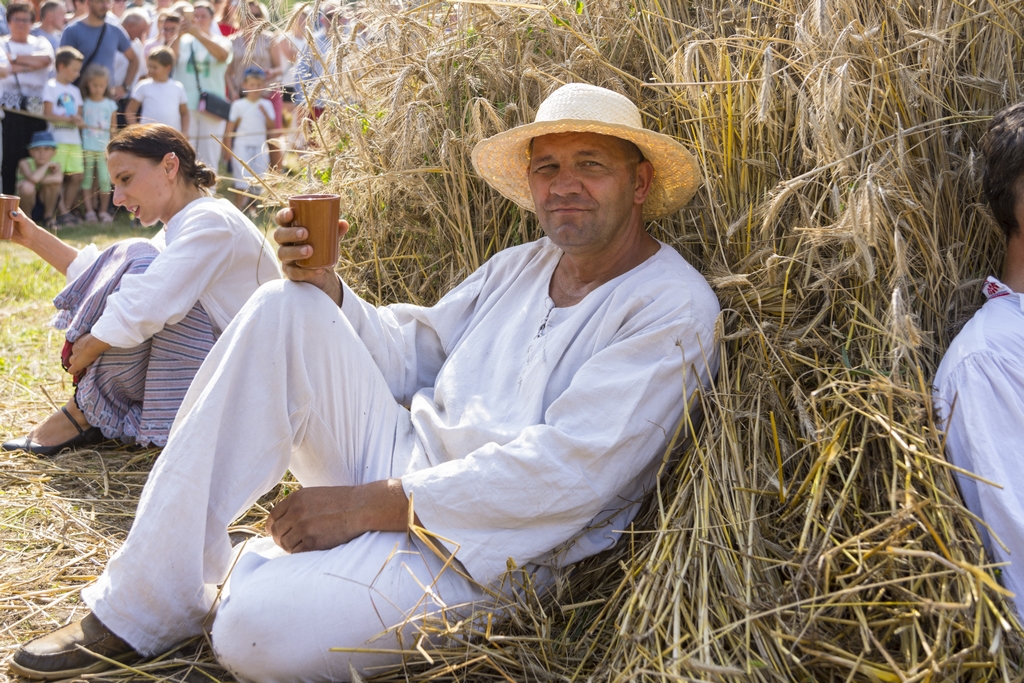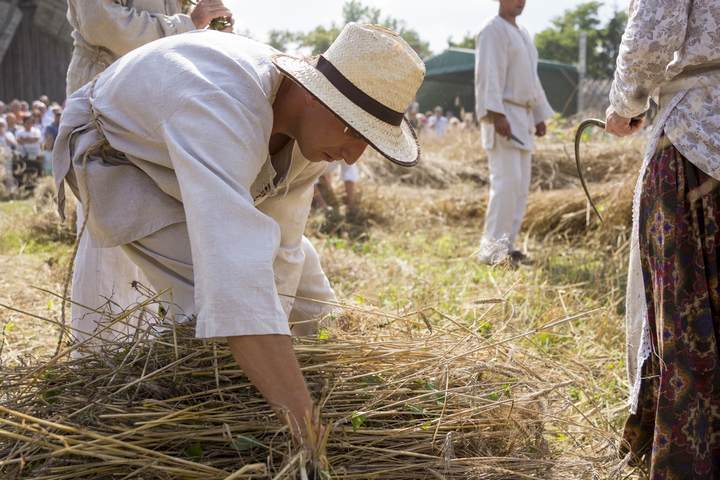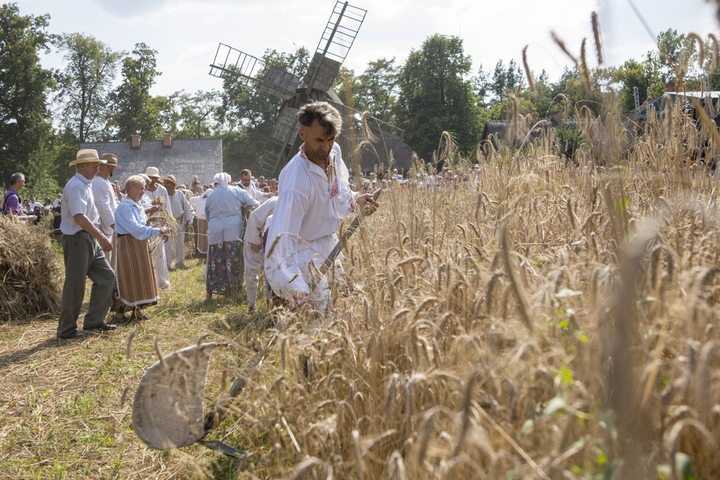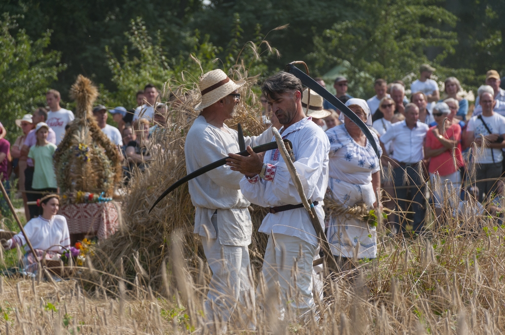 Główną atrakcją Podlaskiego Święta Chleba był pokaz żniwny, który rozpoczął się żęciem żyta za pomocą sierpów, a następnie kos. Po ustawieniu w dziesiątki związanego w snopy zboża, żniwiarze z Zespołu Polne Maki z Dołubowa zaprezentowali obrzęd zdobienia przepiórki i jej oborania. Podczas pokazów żniwnych przygrywał Zespół Klekociaki z Bociek. Następnie żniwiarze w barwnym korowodzie z równianką, chlebem i wieńcem dożynkowym udali się do dworu, gdzie gospodarze po uroczystym powitaniu ugościli ich wyprawiając dożynki.