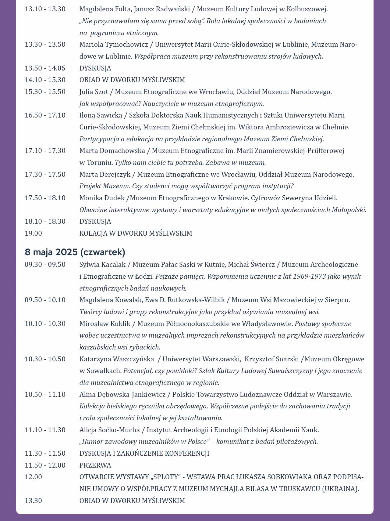 ETNOGRAFIA W MUZEUM | Partycypacja społeczna, zaangażowanie, współdziałanie - program konferencji