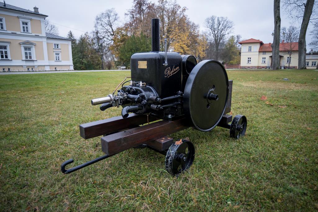 Silnik stacjonarny REFORM KLASSE F II zbudowano ok. 1925 r. w niemieckiej firmie Reform-Motoren-Fabrik w Böhlitz-Ehrenberg. Działania konserwatorskie pozwoliły na dość dokładne określenie daty jego wytworzenia. Był on przeznaczony do napędu stacjonarnych urządzeń gospodarskich, np. młocarni. Jest to silnik gaźnikowy o mocy 9-10 KM (6,6-7,4 kW) przy 600-700 obr/min, przystosowany do spalania benzyny lub nafty, poziomy, 2-cylindrowy o pojemności 2596 cm3, 4-suwowy, chłodzony wodą przez jej odparowanie, z bocznym rozrządem zaworowym i regulatorem obrotów. Z prawej i lewej strony silnika na wale korbowym osadzone są 2 pełne koła zamachowe o szerokości 5,5 cm i średnicy 55 cm. Lewa strona wału korbowego przystosowana jest do podłączenia korby do ręcznego rozruchu silnika. Silnik REFORM KLASSE F II został podarowany Muzeum Rolnictwa w Ciechanowcu w październiku 2018 r. przez Zespół Szkół Centrum Kształcenia Rolniczego im. Jadwigi Dziubińskiej w Golądkowie. Niestety brak dokładnych danych o jego wcześniejszej historii. Do muzeum trafił jako niesprawny i z wieloma brakami podzespołów. W okresie od września do listopada 2019 r. został poddany gruntownej konserwacji z doprowadzeniem do pełnej sprawności technicznej i kolorystyką producenta.