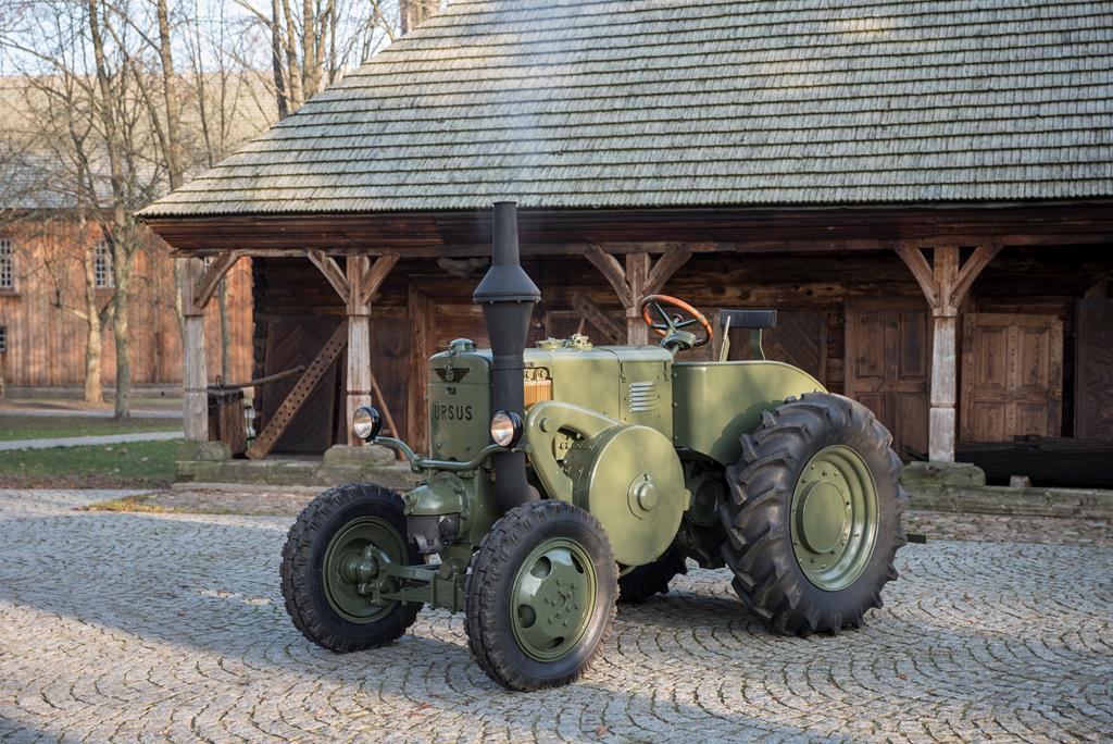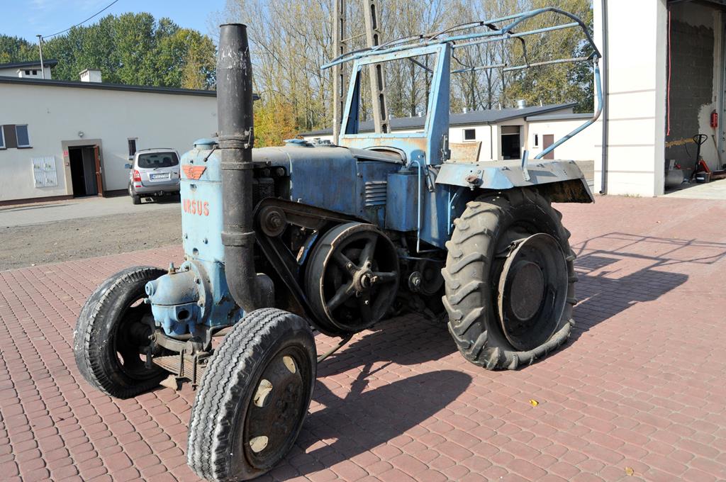 Ciągnik URSUS C-45 wyprodukowano w 1951 r. w Zakładach Mechanicznych „URSUS” w Ursusie. Dzięki konserwacji można było dokładnie sprecyzować jego rok produkcji. Jest to ciągnik kołowy przeznaczony do ciężkich prac polowych i transportowych. Ma budowę bezramową. Jego waga wynosi 3680 kg. Wyposażony jest w 2-suwowy, poziomy, chłodzony cieczą, 1-cylindrowy silnik średnioprężny o pojemności 10300 cm3, mocy 45 KM (33 kW) i maksymalnych obrotach 650/min. Z silnikiem współpracuje 8-stopniowa skrzynia biegów z przyśpieszaczem (6 biegów do przodu + 2 do tyłu). Napęd przekładniowy skierowany na tylne koła ciągnika. Skrzynia biegów pozwala osiągnąć maksymalną prędkość jazdy do 16,7 km/h w przód i 11,9 km/h w tył.