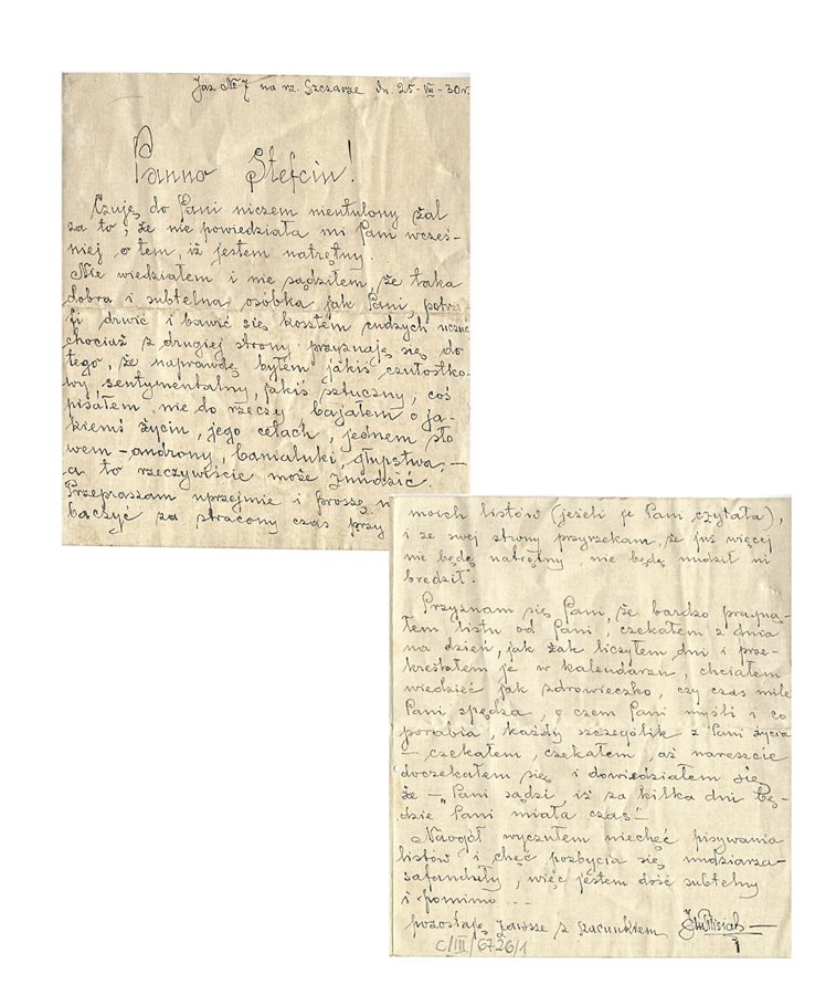 Przyznam się Pani, że bardzo pragnąłem listu od Pani, czekałem z dnia na dzień, jak żak liczyłem dni i przekreślałem je w kalendarzu, chciałem wiedzieć jak zdrowiczko, czy czas mile Pani spędza, o czem Pani myśli i co porabia. Każdy szczególik z Pani życia – czekałem, czekałem, aż nareszcie doczekałem się i dowiedziałem, że -,,Pani sądzi iż za kilka dni będzie Pani miała czas’’. Na ogół wyczułem niechęć pisywania listów i chęć pozbycia się nudziarza – safanduły, więc jestem dość subtelny i pomimo…