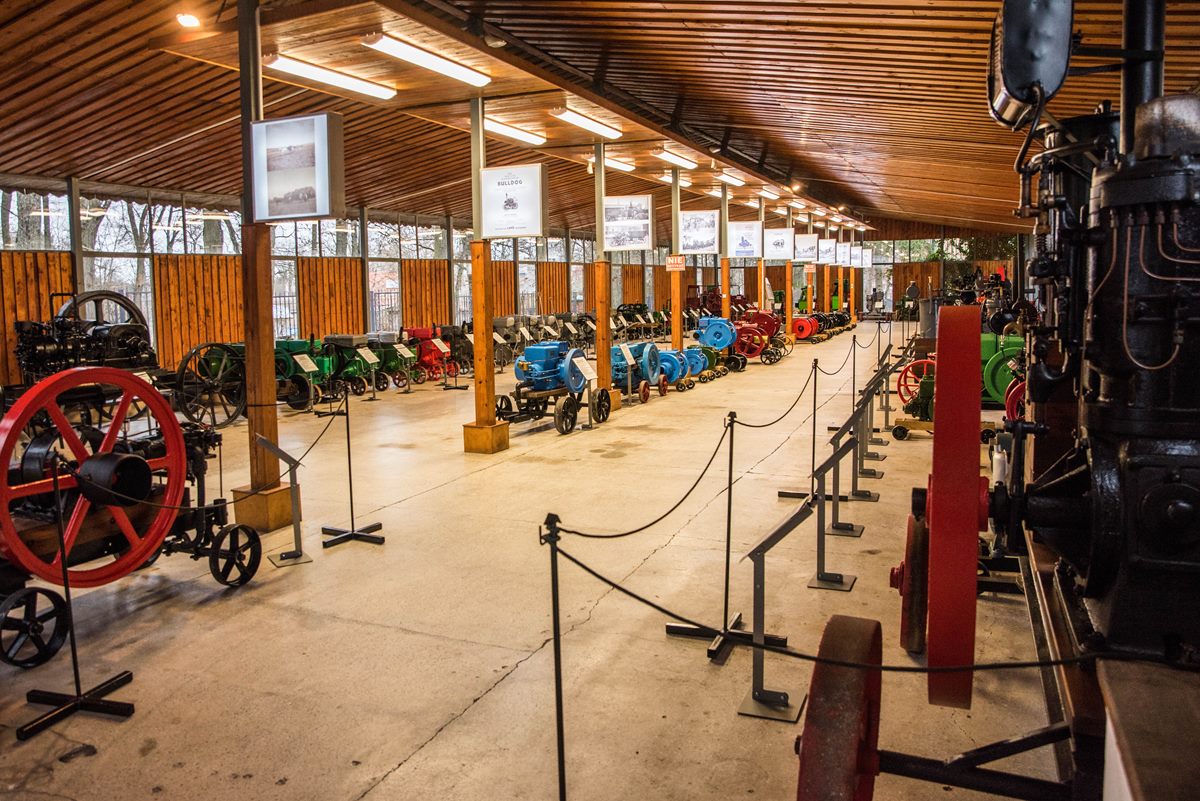 Największa w Polsce muzealna kolekcja 65 sprawnych technicznie ciągników, wyprodukowanych w Polsce i zagranicą w latach 1917-1990. W kolekcji znajdują się najstarsze zachowane egzemplarze ciągników z terenu naszego kraju, np. Titan 10-20 z 1917 r., Fordson F z 1918 r., różne modele przedwojennych ciągników Lanz. Wśród polskich ciągników, m. in. kilka egzemplarzy kultowego Ursusa C-45, trzykołowy ciągnik Jaromka z 1968 r. i również trzykołowy Ursus C 308 z 1959 r.