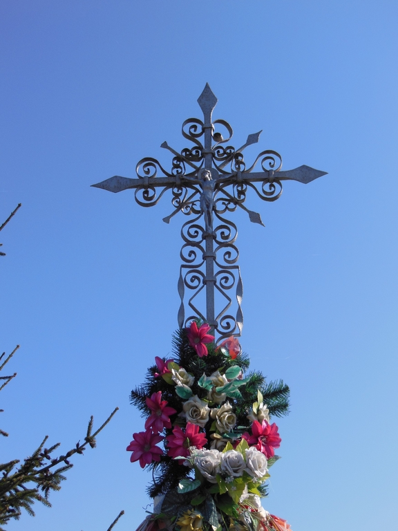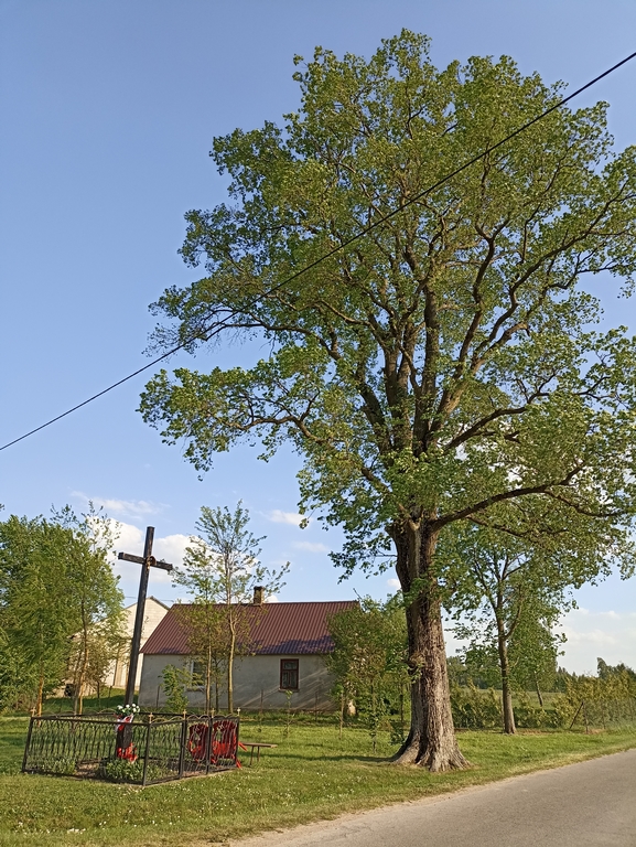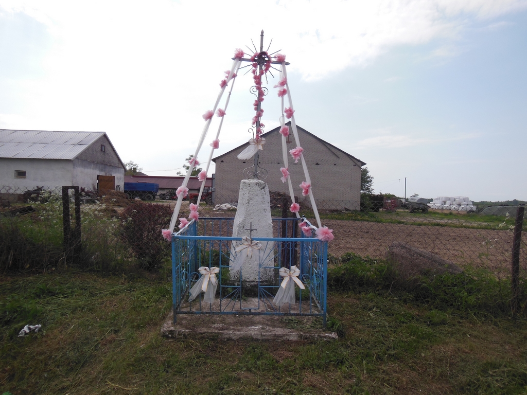 Krzyż przydrożny we wsi Lubowicz Wielki, przy którym odbywają się majowe. Fot. M. Brzozowska, 2022 r.