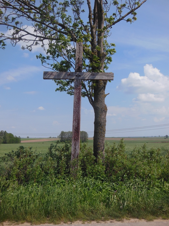 Drewniany krzyż przy śródpolnej drodze do Łuniewa Wielkiego. Fot. M. Brzozowska, 2017 r.