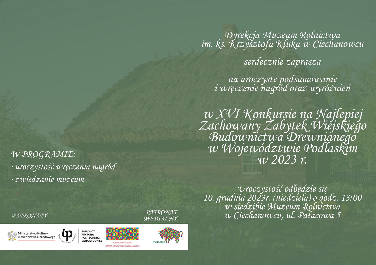 Podsumowanie XVI Konkursu na Najlepiej Zachowany Zabytek Wiejskiego Budownictwa Drewnianego w Województwie Podlaskim w 2023 r.