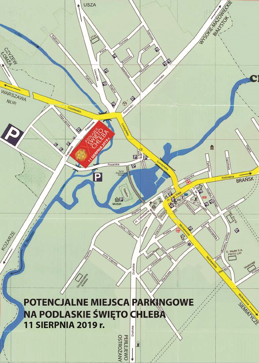 XIX Podlaskie Święto Chleba - mapa parkingów i dojazd alternatywny od strony Siemiatycz