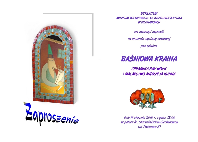 19 sierpnia 2010 roku w sali wystaw czasowych w pałacu Muzeum Rolnictwa im. ks. Krzysztofa Kluka otwarto wystawę czasową p.t. „Baśniowa Kraina – Ceramika Ewy Wołk i malarstwo Andrzeja Kuhna”. Ekspozycję możemy oglądać codziennie do 3 października b.r.