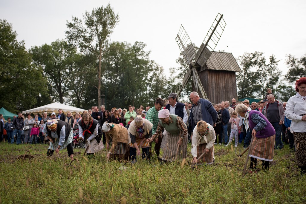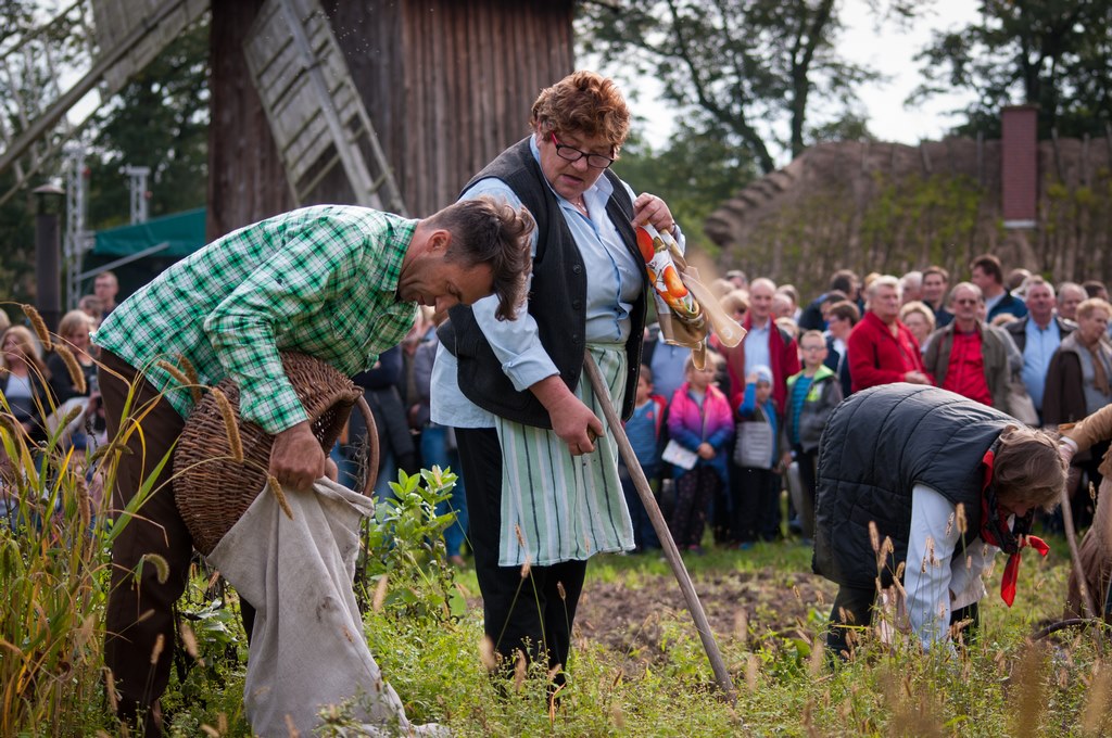 W scenerii pracującego wiatraka odbyły się pokazy: kopania ziemniaków, szatkowania i kiszenia kapusty, tradycyjnej obróbki lnu, strzyżenia owiec, podskubywania gęsi, kręcenia snopków na strzechę, wirowania mleka i wyrobu masła, pracy kowala oraz pokazy pracy dawnych stacjonarnych silników spalinowych.