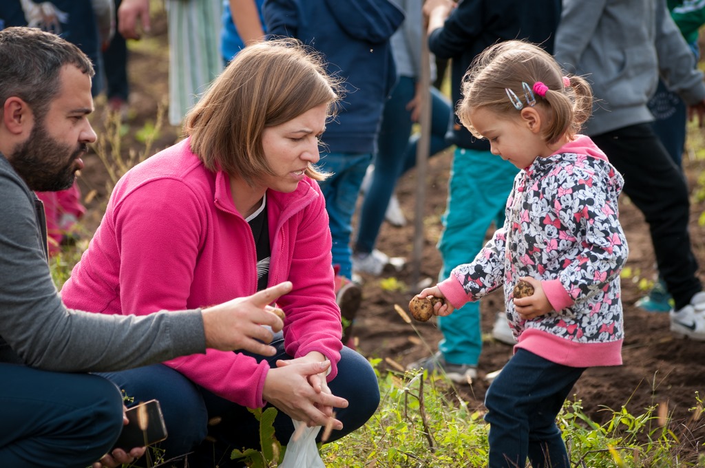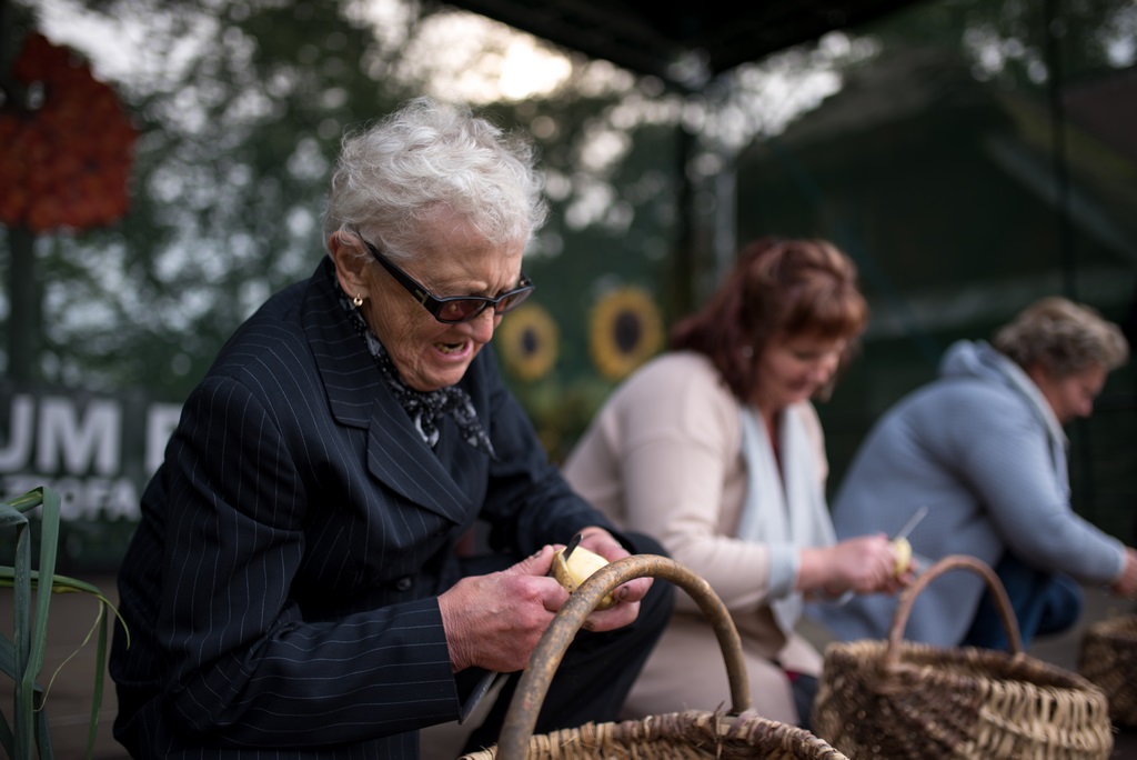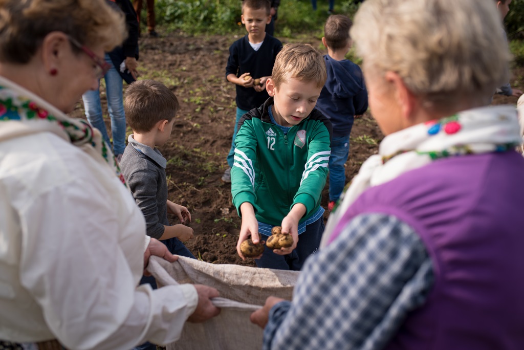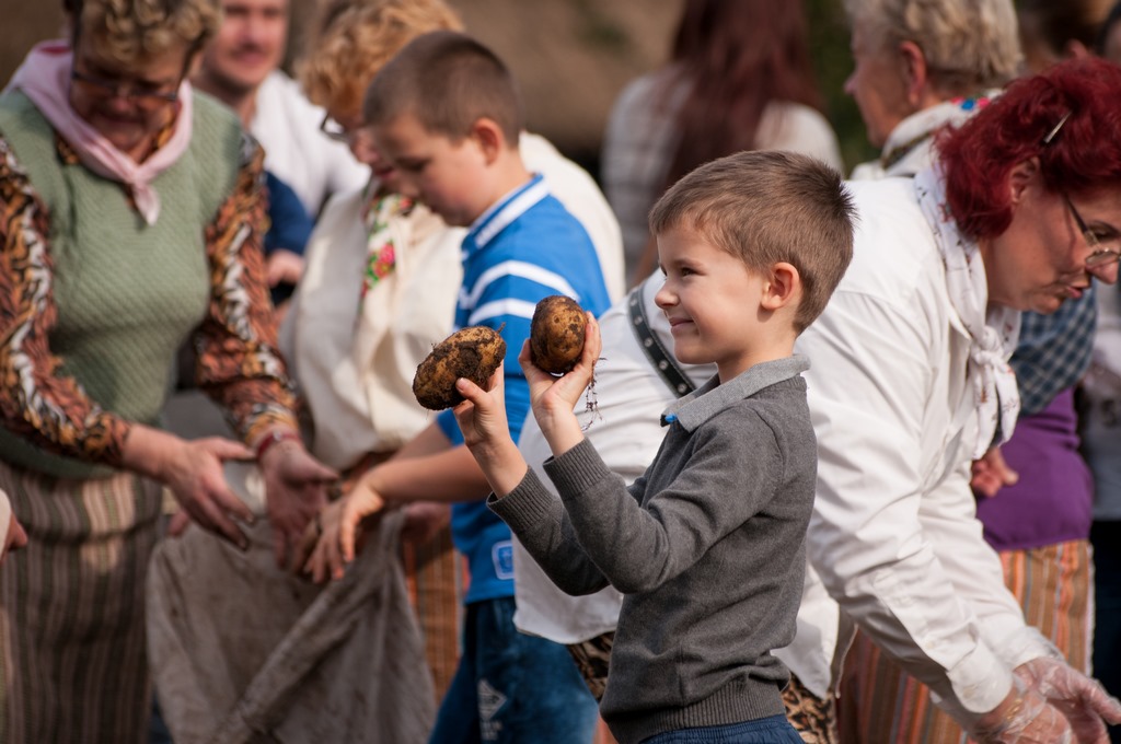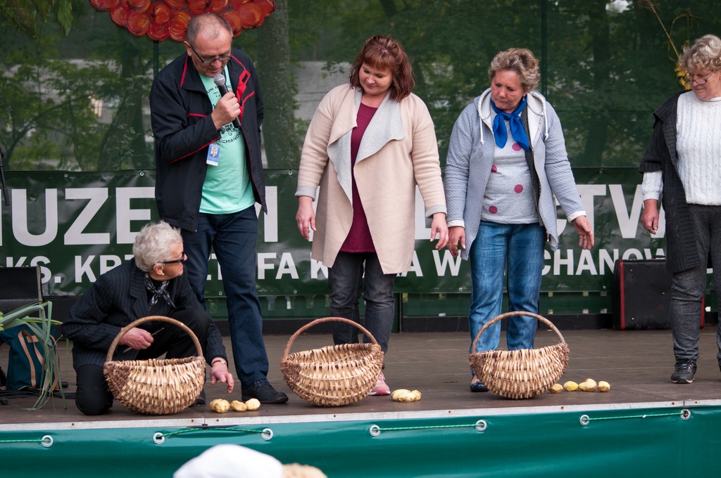 Pokaz kopania ziemniaków motykami wykonały gospodynie ze Stowarzyszenia Koła Gospodyń Wiejskich z Dołubowa w gminie Dziadkowice. Następnie odbyła się tradycyjna tłoka ziemniaczana czyli wspólne zbieranie ziemniaków za kopaczką konną. Po czym kartoflisko zostało pobronowane broną i zaorane pługiem konnym. Na polu ziemniaczanym płonęło ognisko i pieczone były ziemniaki, którymi poczęstowano dzieci uczestniczące w tłoce.