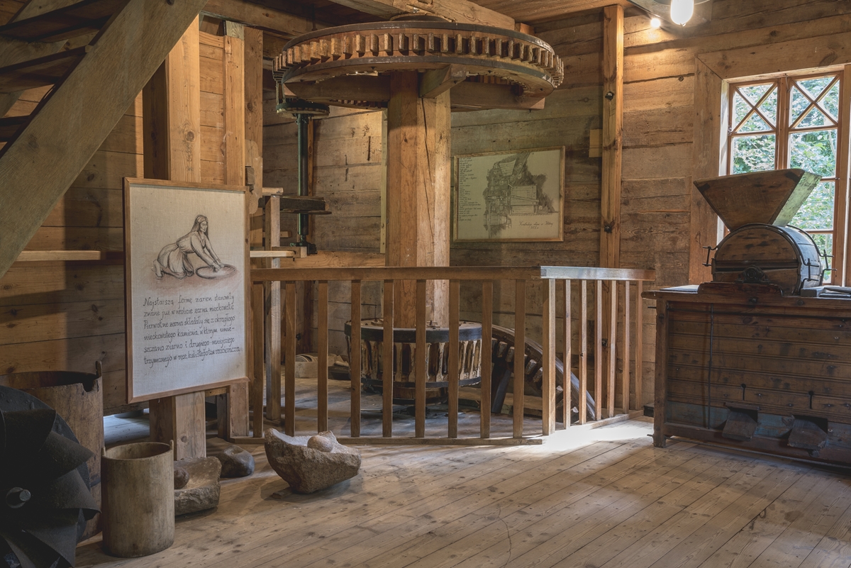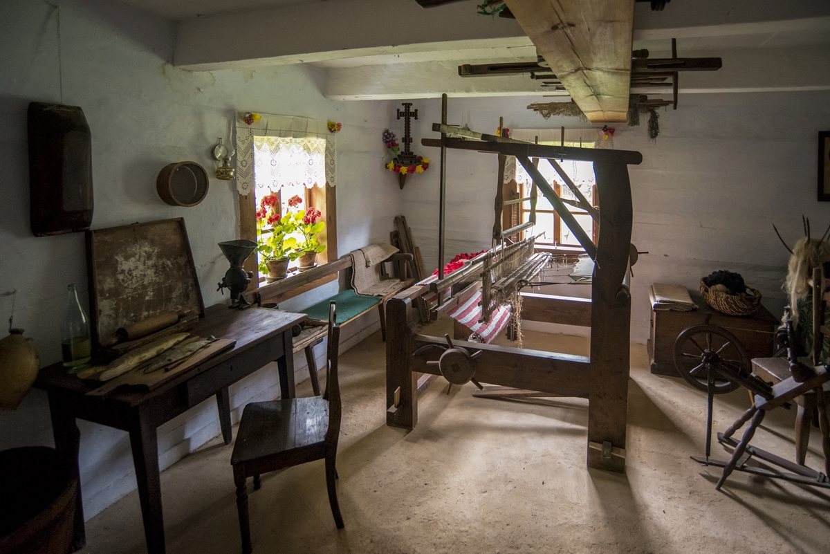 Największy i najstarszy z działów Muzeum. Jego zbiory (14 150 eksponatów) cechuje wielka różnorodność zabytków. Niech świadczy o tym fakt, że znajdują się one niemal na wszystkich wystawach w Muzeum. Można je sklasyfikować następująco, są to narzędzia do uprawy roli, narzędzia i urządzenia rzemieślnicze. Poza tym wszystko to, co składa się na wyposażenie domów wiejskich oraz sprzęt gospodarstwa domowego. Liczne narzędzia do obróbki lnu, sprzęty i wyroby tkackie oraz jedna z większych w kraju kolekcji wełnianych dywanów dwuosnowowych (180 eksponatów). Kolejną część stanowi szeroko pojęty transport wiejski, przedmioty związane z rybołówstwem, pszczelarstwem, pasterstwem i hodowlą. Warte uwagi są zbiory twórczości ludowej (duża kolekcja rzeźb), plastyki obrzędowej (w tym kolekcja pisanek licząca 2 614 sztuk) i zabawek.