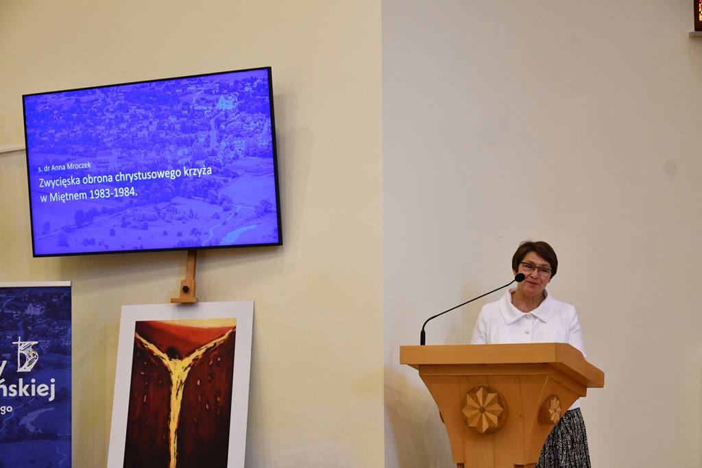 S. dr Anna Mroczek w wystąpieniu zatytułowanym „Zwycięska obrona chrystusowego krzyża w Miętnem 1983-1984” – podzieliła się swoim świadectwem, jako uczestniczka wydarzeń w Miętnem.