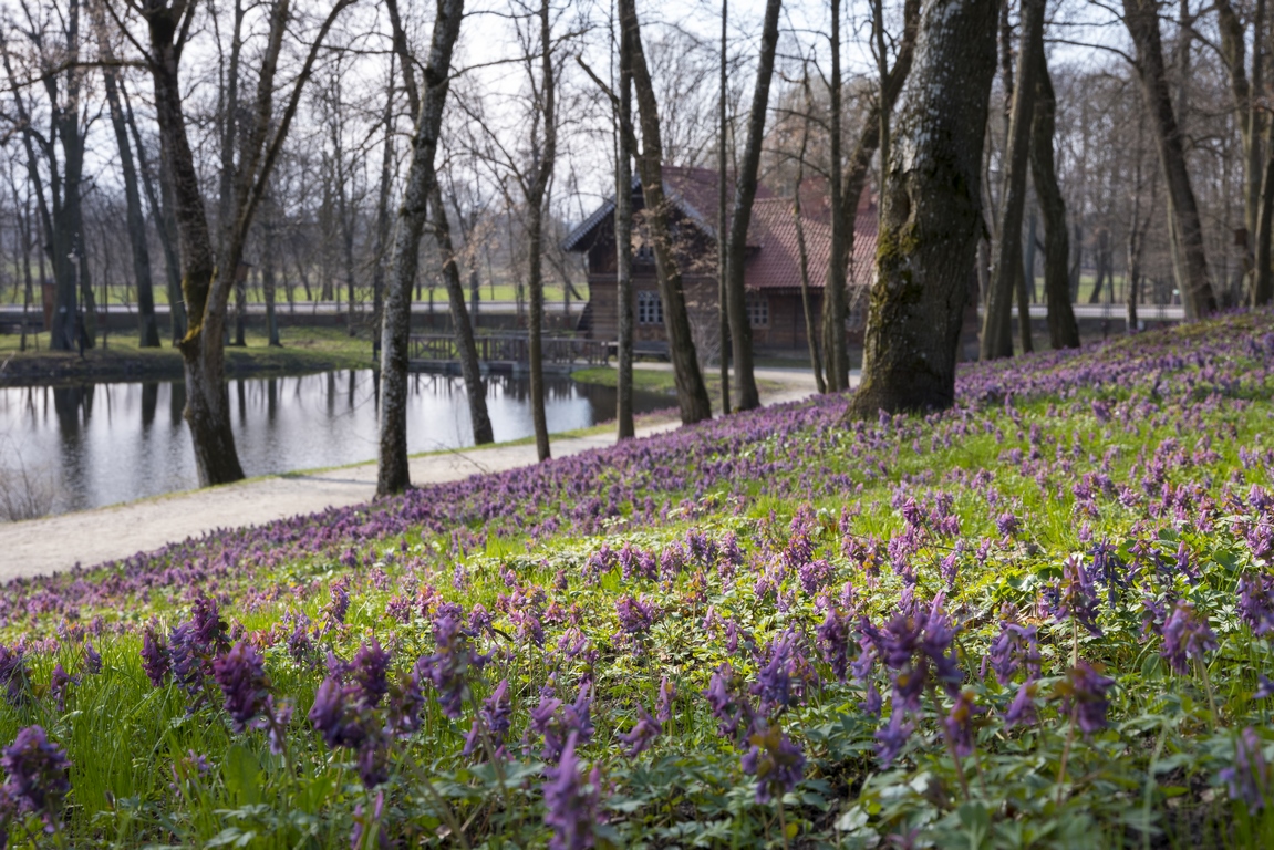 Wiosną, kiedy przyroda budzi się do życia, w dawnej siedzibie rodziny Starzeńskich robi się wyjątkowo pięknie. Oczy cieszą wielobarwne kobierce wiosennych kwiatów, zieleniące się korony starych, majestatycznych drzew, malowniczy staw, gdzie można podglądać życie dzikich mieszkańców parku. W części skansenowskiej wyjątkowego uroku nabierają wiejskie ogrody. Za sprawą rozkwieconych rabatek i zamieszkujących zagrody zwierząt skansen już teraz tętni życiem.