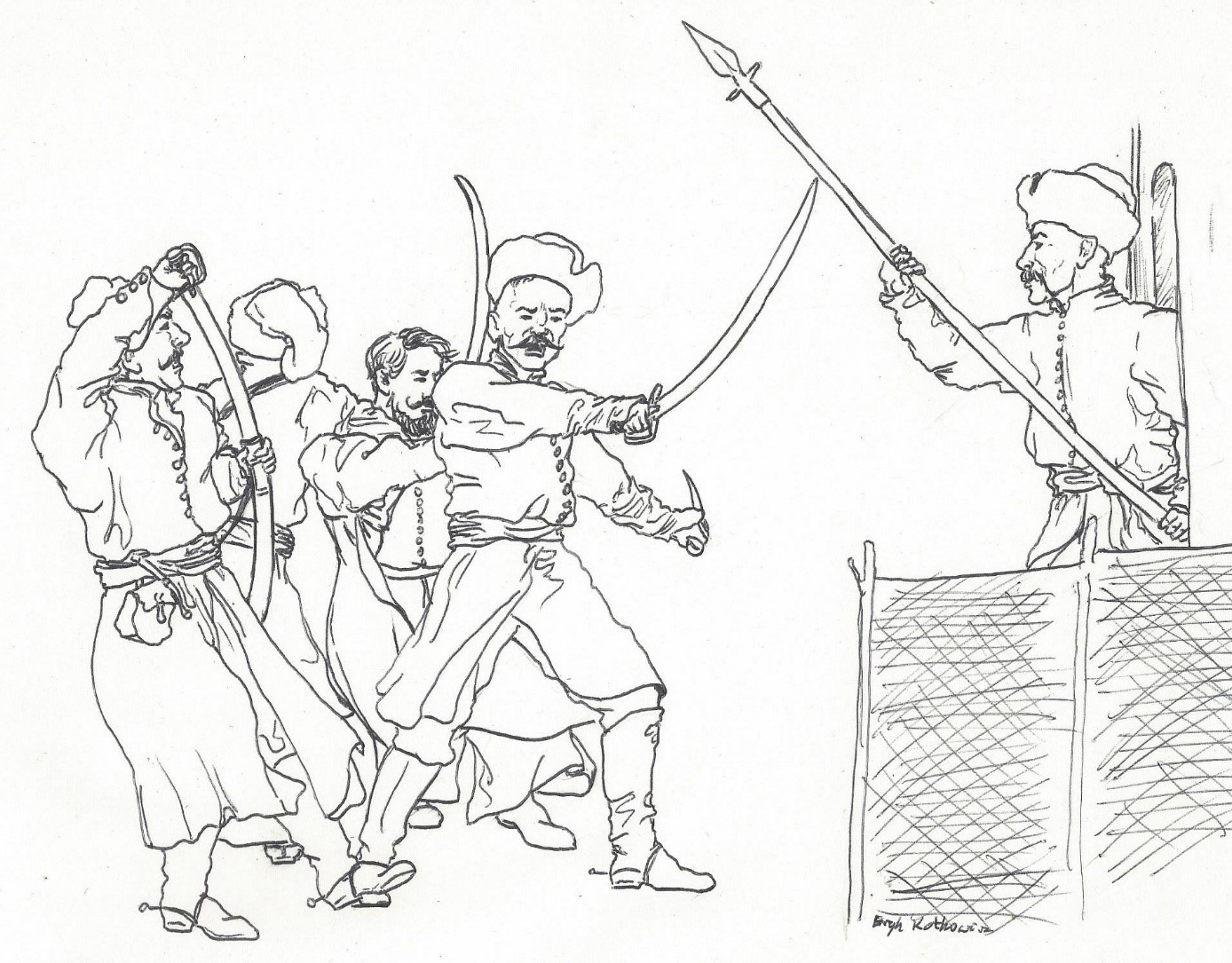 Rys. Zwada Piotra Piętki z Wyszyńskimi – rys. E. Kotkowicz.