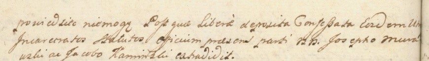 Nie byłem przy tem, ale w izbie z panami Kocami i Niemyjskimi siedzieliśmy z bratem Bartłomiejem. A nieboszczyk z rodzicem naszym w sieni, w tejże gospodzie pili, tak że nie wiem, o co się zwadka stała i hałas, i nie wiem, kto w tym tumulcie nieboszczyka zabił. Gotowiśmy się wszyscy wywieść.