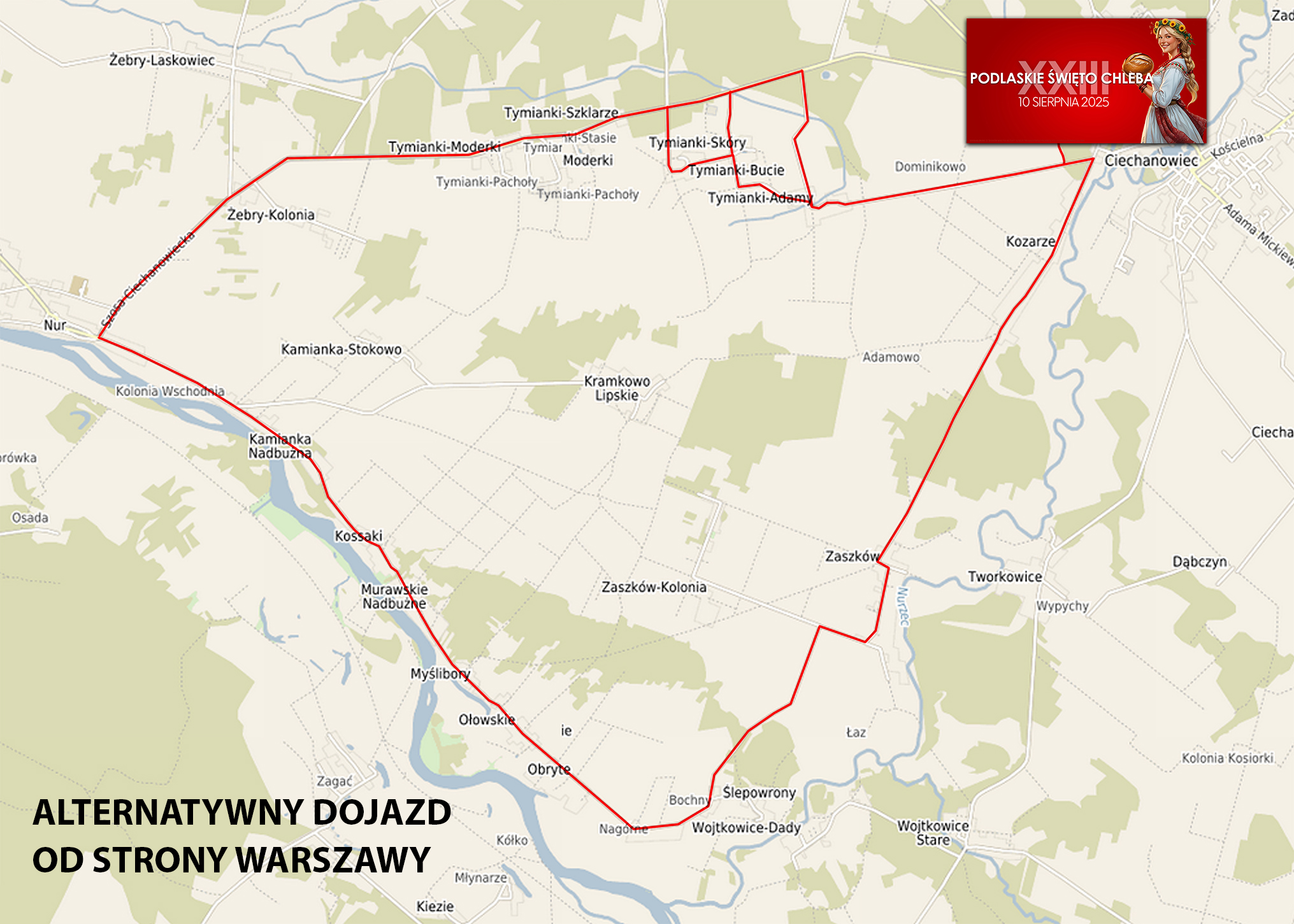 Вы находитесь: XXIII Podlaskie Święto Chleba 2025 - plan sytuacyjny wydarzenia i dojazdy do Ciechanowca